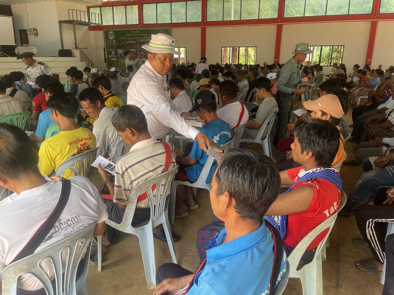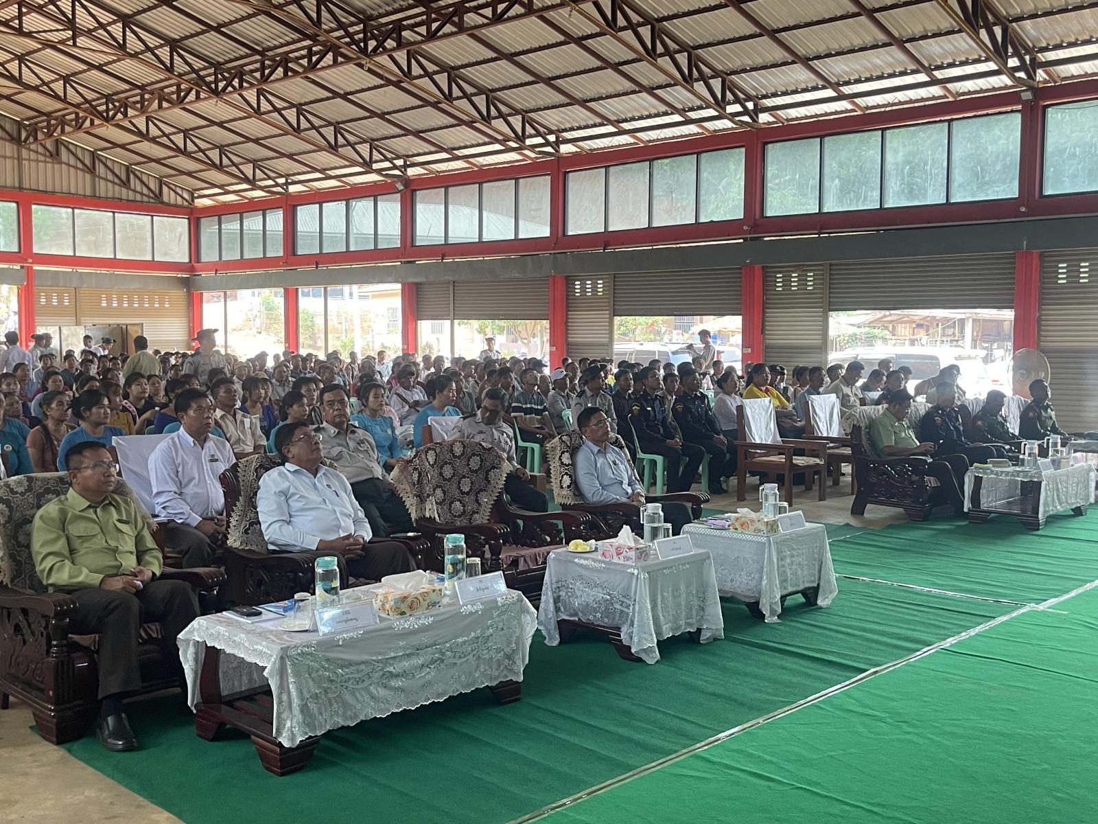 ထို့နောက် အခမ်းအနားသို့တက်ရောက်လာသည့် ဒေသခံပြည်သူများအား မြန်မာဘာသာ၊ လားဟူဘာသာ၊ အာခါဘာသာ၊ ရှမ်းဘာသာ (၄) မျိုးဖြင့် ရေးသားထားသော နယ်စပ်ဖြတ်ကျော် မီးခိုးမြူငွေ့ညစ်ညမ်းမှု လျှော့ချရေးဆိုင်ရာ အသိပညာပေးလက်ကမ်းစာစောင် (၄၅၀) စောင်အား တာဝန်ရှိသူများမှ ဖြန့်ဝေပေးခဲ့ကြကြောင်း သိရသည်။