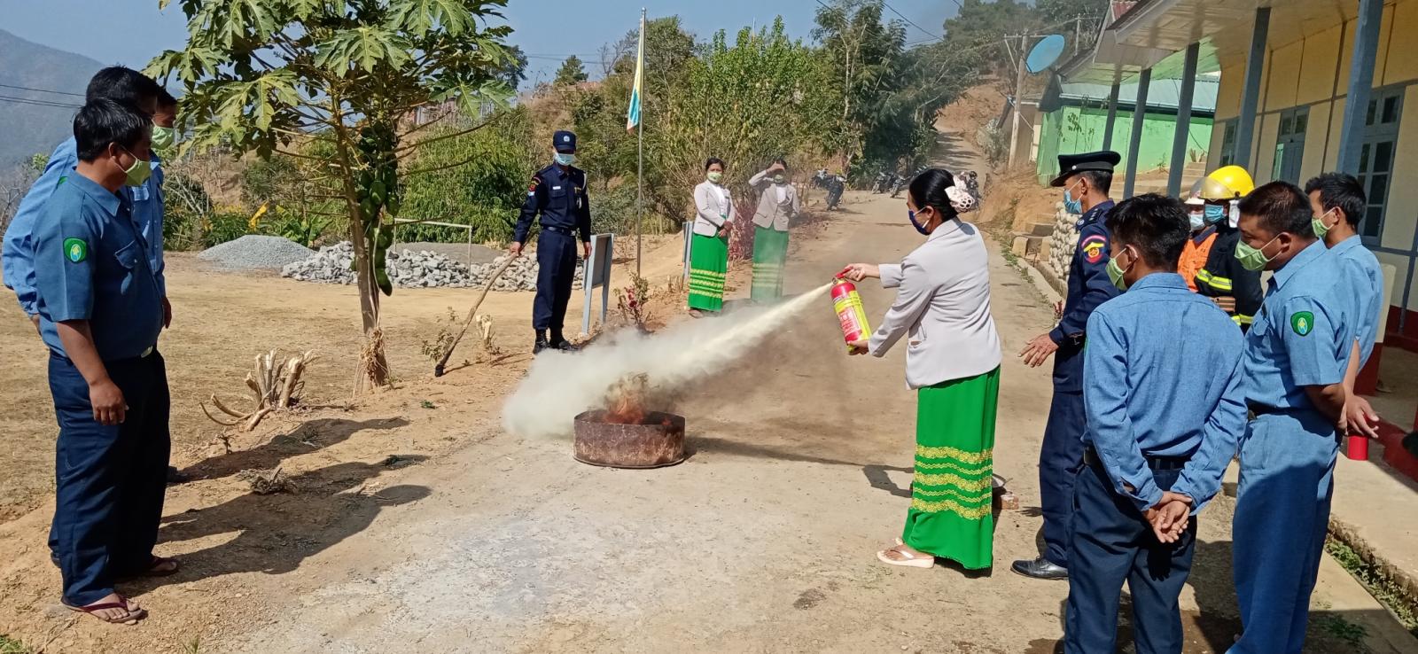 ထို့နောက် မီးလောင်မှု ဖြစ်ပွားလာပါက ဝန်ထမ်းများ ကိုယ်တိုင် စနစ်တကျ မီးငြိှမ်းသတ်နိုင်ရေးအတွက် သရုပ်ပြလေ့ကျင့် ပေးလျက် ရှိကြောင်း သိရသည်။