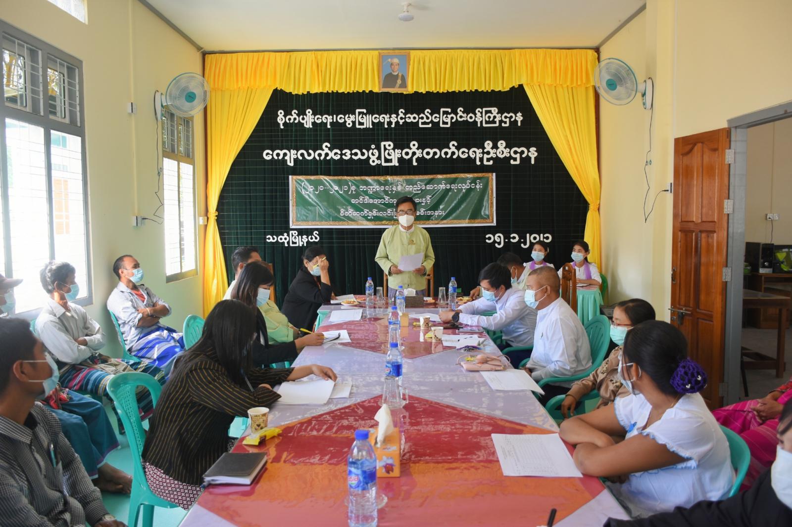 ယင်းနောက် မြို့နယ်ကျေးလက်ဒေသဖွံ့ဖြိုးတိုးတက်ရေးဦးစီးဌာနမှူး၊ လက်ထောက်ညွှန်ကြားရေးမှူး ဦးမြင့်နိုင်ဦးက လုပ်ငန်းများဆောင်ရွက်ပေးရသည့်ရည်ရွယ်ချက်တို့ကို ရှင်းလင်း ပြောကြားကာ ကျေးရွာအုပ်ချုပ်ရေးမှူးများ၊ ကျေးရွာရေပေးရေးကော်မတီများ နှင့် တင်ဒါအောင်ကုမ္ပဏီတို့မှ တာဝန်ရှိသူတို့အားမိတ်ဆက်ပေးကာ ကျေးရွာအလိုက် လုပ်ငန်း ဆောင်ရွက်မည့်အခြေအနေများကို ချပြရှင်းလင်းခဲ့သည်။