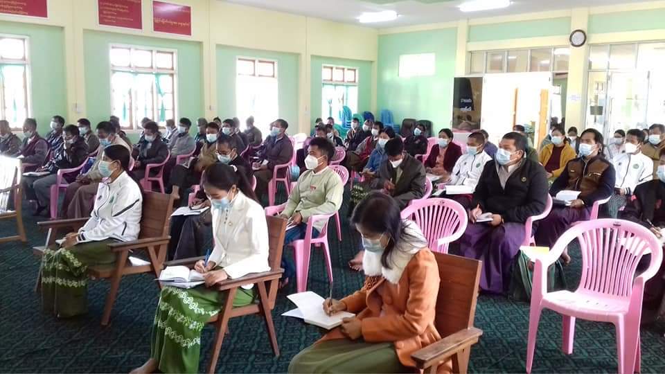 ရှမ်းပြည်နယ်တောင်ပိုင်း ဓနုကိုယ်ပိုင်အုပ်ချုပ်ခွင့်ရဒေသ ပင်းတယမြို့၊ အထွေထွေအုပ်ချုပ်ရေး ဦးစီးဌာန ခန်းမ၌ ရပ်ကွက်နှင့်ကျေးရွာအုပ်စု အုပ်ချုပ်ရေးမှူးရွေးချယ်ရေးဆိုင်ရာ လုပ်ငန်းစဉ်များ ရှင်းလင်းပွဲ အခမ်း အနားကို ယနေ့နံနက် (၁၀) နာရီကျင်းပပြုလုပ်ခဲ့ကြောင်း သိရသည်။