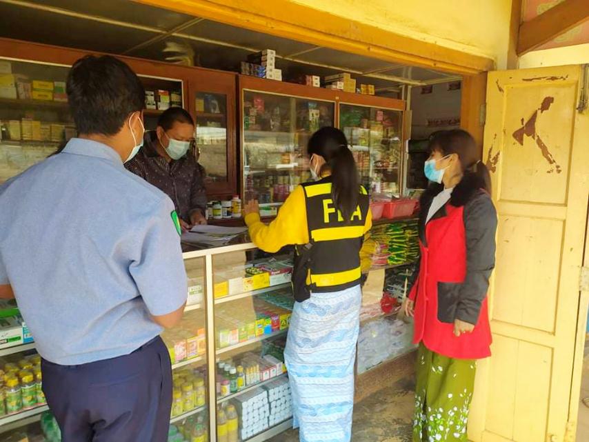 ကျန်းမာရေးနှင့် အားကစားဝန်ကြီးဌာန၊ အစားအသောက်နှင့် ဆေးဝါးကွပ်ကဲရေးဦးစီးဌာန (တောင်ကြီး) Good Agricultural Practices -FDA မှ တာဝန်ရှိသူများနှင့် ပူးပေါင်းအဖွဲ့ဝင်များသည် ယနေ့ နံနက် ၁၀ နာရီက အချိန်က ရှမ်းပြည်နယ်(တောင်ပိုင်း) လင်းခေးခရိုင် မိုးနဲမြို့နယ်အတွင်းရှိ ဆေးဆိုင်များအား ကွင်းဆင်း စစ်ဆေးခဲ့ကြောင်း သိရသည်။