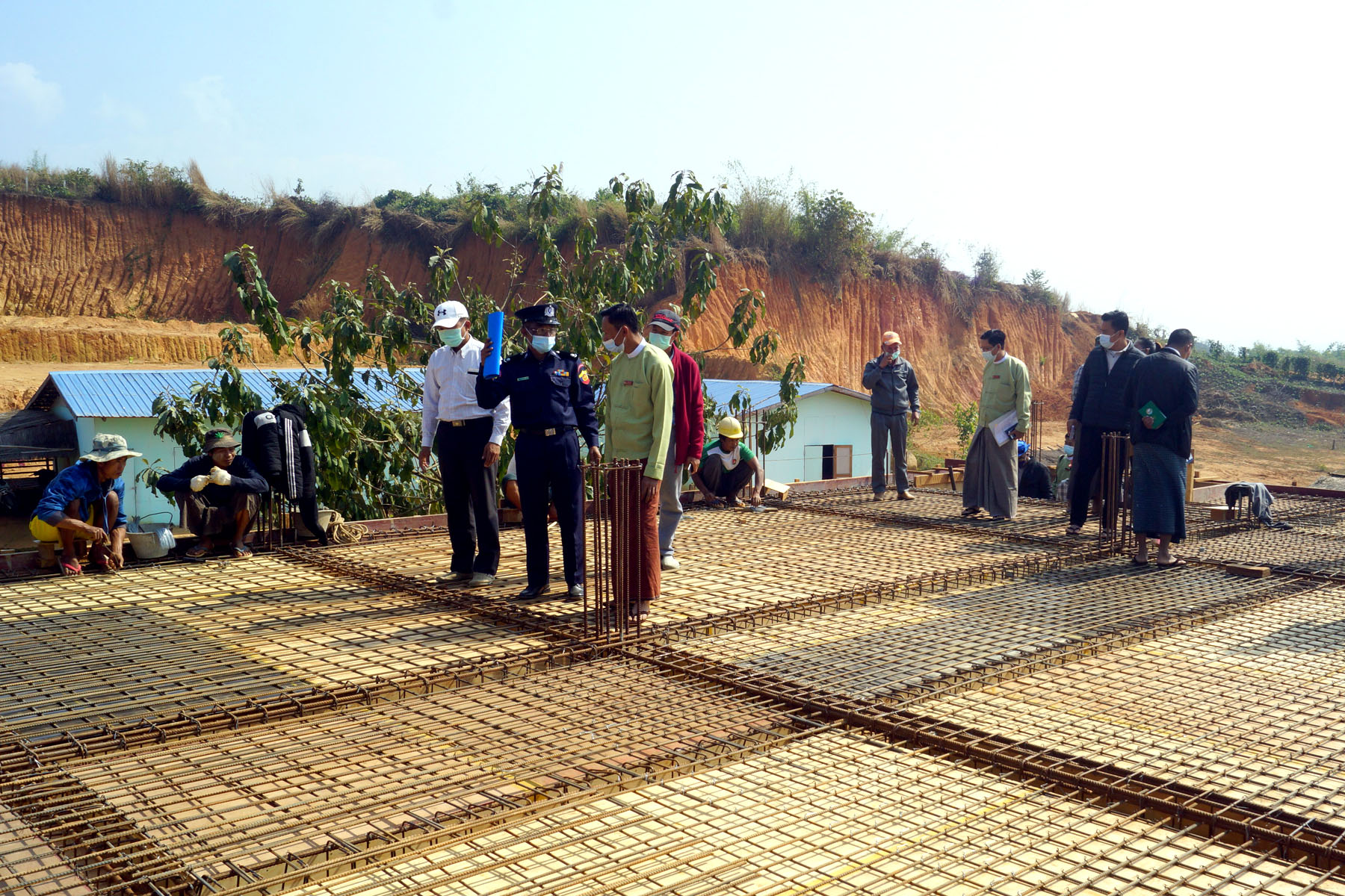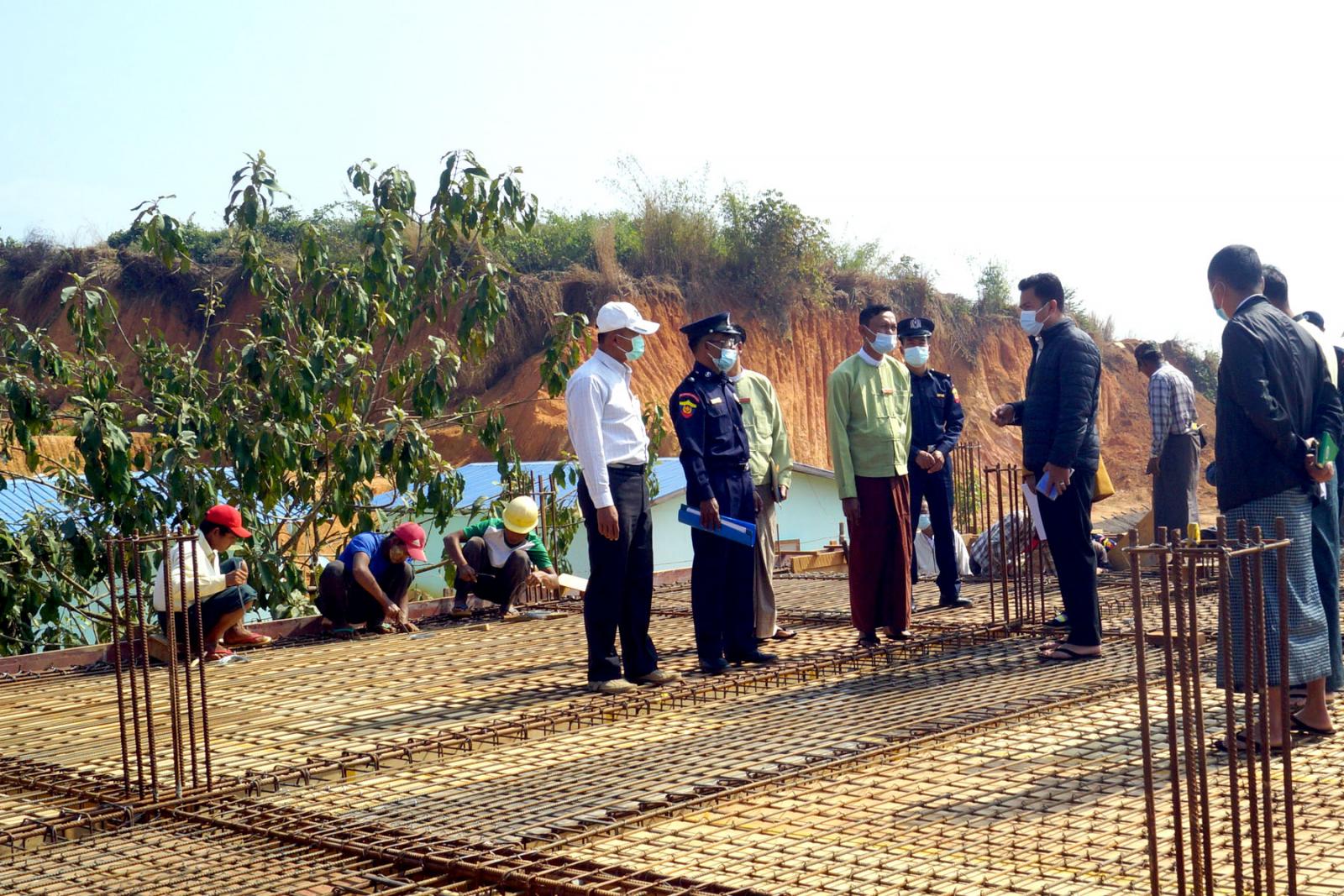 ရှေးဦးစွာ ၂၀၂၀-၂၀၂၁ ဘဏ္ဍာနှစ် ပြည်နယ်ခွင့်ပြုရန်ပုံငွေကျပ်(၂၂၀.၆၀၅)သန်းဖြင့် တင်ဒါအောင်မြင်သည့် တင်မြင့်ရီ ဆောက်လုပ်ရေးကုမ္ပဏီမှ တာဝန်ယူတည်ဆောက်လျက်ရှိသော အလျား (၇၅)ပေ၊ အနံ(၅၂)ပေ၊ အမြင့်(၂၆)ပေ RC (၂)ထပ် ခရိုင်မီးသတ်ဦးစီးဌာနရုံး တည်ဆောက်နေမှုကို ကွင်းဆင်းကြည့်ရှု စစ်ဆေး၍ လုပ်ငန်းခွင်အန္တရာယ်ကင်းရှင်းရေး၊ သတ်မှတ် စံချိန်စံညွှန်းနှင့်အညီ အချိန်မီပြီးစီးအောင် တည်ဆောက်ရေး ကုမ္ပဏီတာဝန်ရှိသူများအား မှာကြားပြီး လိုအပ်သည်များ ပေါင်းစပ် ညှိနှိုင်းဆောင်ရွက်ပေးခဲ့သည်။