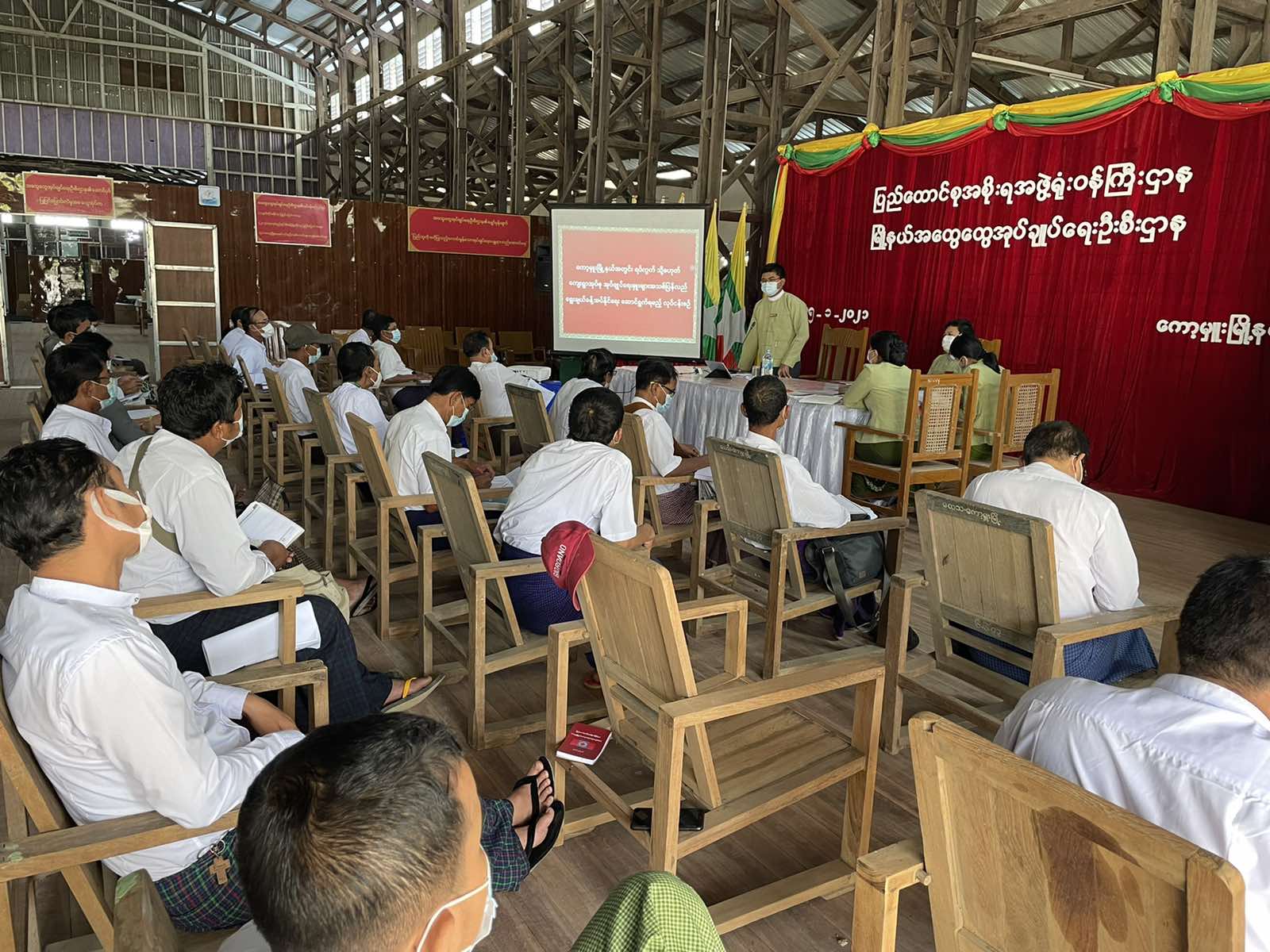 ဆွေးနွေးပွဲတွင်လက်ရှိ ရပ်ကွက်နှင့်ကျေးရွာအုပ်စု အုပ်ချုပ်ရေးမှူးများ၏ သက်တမ်းမှာ ၂၀၂၁ ခုနှစ် မတ်လ ၃၁ ရက် နေ့တွင် ကုန်ဆုံးမည်ဖြစ်ရာ အုပ်ချုပ်ရေးမှူးအသစ်များအား ၂၀၂၁ ခုနှစ် ဧပြီလ ၁ရက်နေ့တွင် ပြန်လည်ရွေးချယ် ခန့်အပ် တာဝန်ထမ်းဆောင်နိုင်ရေး ရပ်ကွက်/ကျေးရွာ အုပ်စု အုပ်ချုပ်ရေးမှူးများ၊ ရပ်ကွက်/ကျေးရွာ စာရေးဝန်ထမ်း များအား အုပ်ချုပ်ရေးဥပဒေ၊ နည်းဥပဒေများနှင့် စပ်လျဉ်း၍ ဥပဒေနည်းဥပဒေများတွင် ပြဋ္ဌာန်းထားသည့် လုပ်ငန်း အကောင် အထည်ဖော် ဆောင်ရွက်မည့် (Time Frame) ပါ အချိန်ကာလ သတ်မှတ်ချက်များအတိုင်း ခန့်အပ်နိုင်ရေး ရပ်ကွက်/ကျေးရွာ အုပ်ချုပ်ရေးမှူးများ ပြန်လည်ရွေးချယ်ရာတွင် ဥပဒေ၊ နည်းဥပဒေအတိုင်း ဆောင်ရွက်နိုင်ရေး အုပ်ချုပ်ရေးဆိုင်ရာ ယန္တရား အဆင့်ဆင့် ဆောင်ရွက်နေမှုများကို အကျယ်တဝင့် ရှင်းလင်းပြောကြားခဲ့သည်။