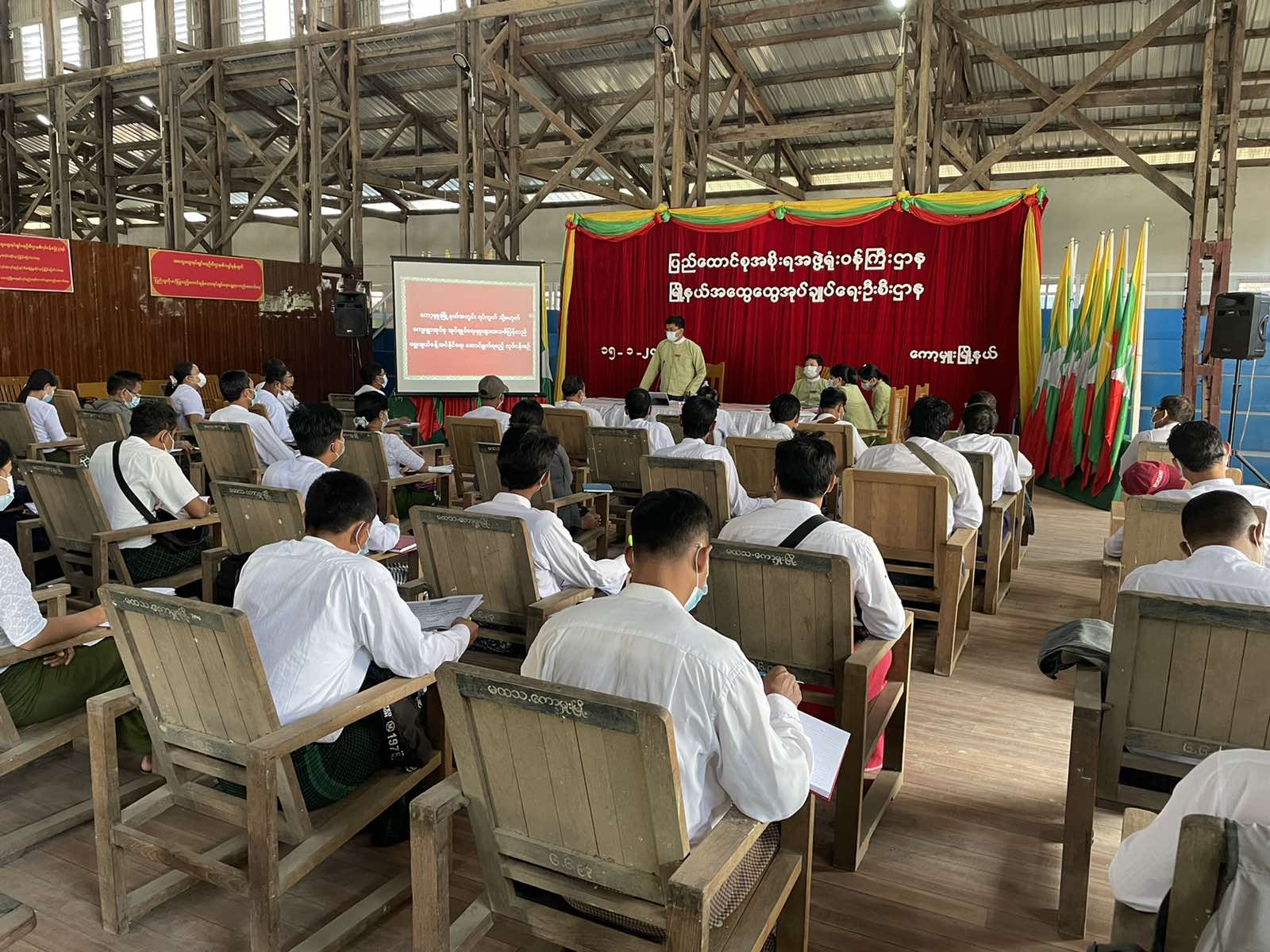 ရပ်ကွက်/ကျေးရွာအုပ်စု အုပ်ချုပ်ရေးမှူးများ ပြန်လည်ရွေးချယ်ရာတွင် ပြည်သူလူထုပူးပေါင်း ပါဝင်မှုဖြင့် ပတ်သက်၍ ရပ်ကွက်/ကျေးရွာ အုပ်စုအုပ်ချုပ်ရေးဆိုင်ရာ နည်းဥပဒေများ အသိပညာပေးဆွေးနွေးခြင်းကို ယမန်နေ့ နံနက် ၁၀ နာရီက ရန်ကုန်တောင်ပိုင်းခရိုင် ကော့မှူးမြို့နယ် မြို့သစ်ရပ်ကွက် မြို့နယ်အထွေထွေ အုပ်ချုပ်ရေးဦးစီးဌာန ယာယီရုံး ၌ ကျင်းပခဲ့သည်။