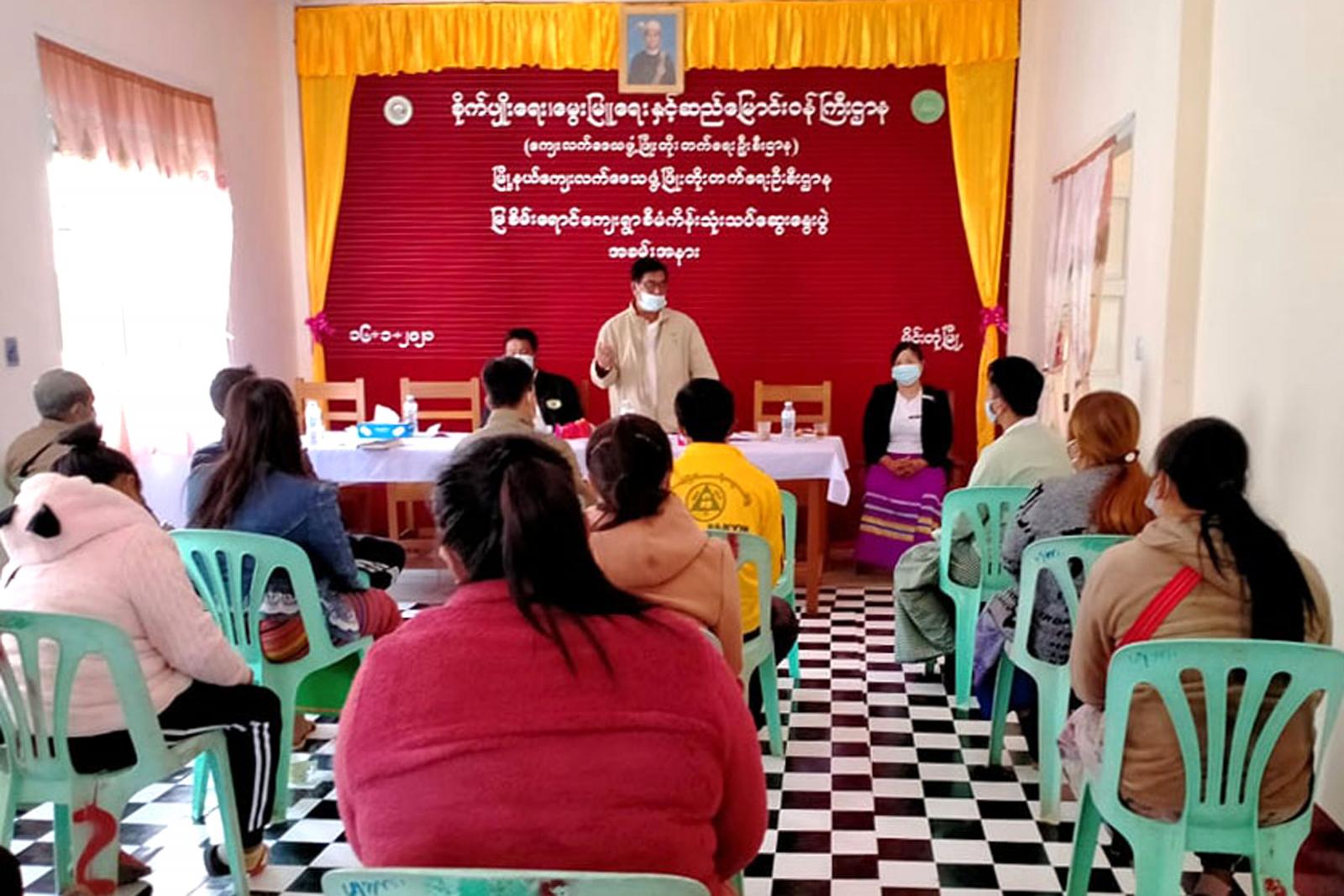 အစည်းအဝေးတွင် ပြည်သူ့လွှတ်တော်ကိုယ်စားလှယ် ဦးအောင်ကျော်ဦးနှင့် ပြည်နယ်လွှတ်တော် ကိုယ်စားလှယ် ဦးစောမူးလာတို့က အမှာစကားပြောကြားပြီး မြို့နယ်ကျေးလက်ဒေသဖွံ့ဖြိုးတိုးတက်ရေး ဦးစီးဌာန၊ မြို့နယ်ဦးစီးမှူး ဒေါ်မိုးသဉ္ဇာဟန်က မြစိမ်းရောင်စီမံကိန်း အကောင်အထည်ဖော်ဆောင်ရွက်နေမှု အခြေအနေများကို ရှင်းလင်းတင်ပြသည်။