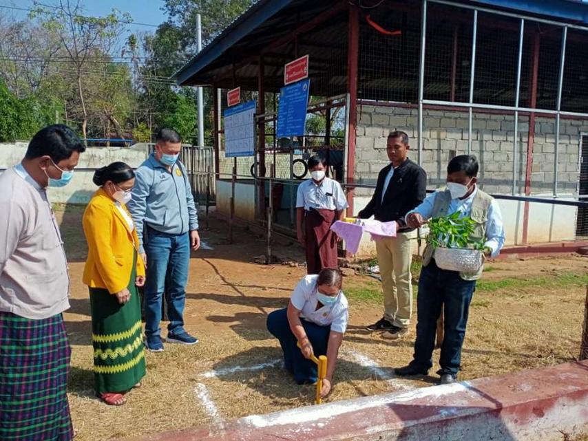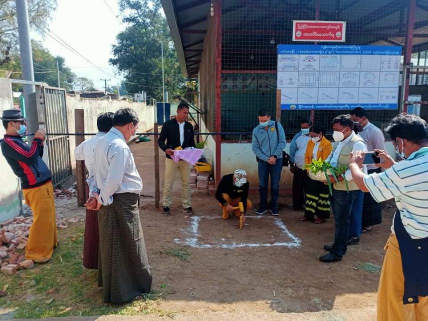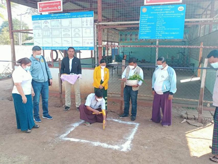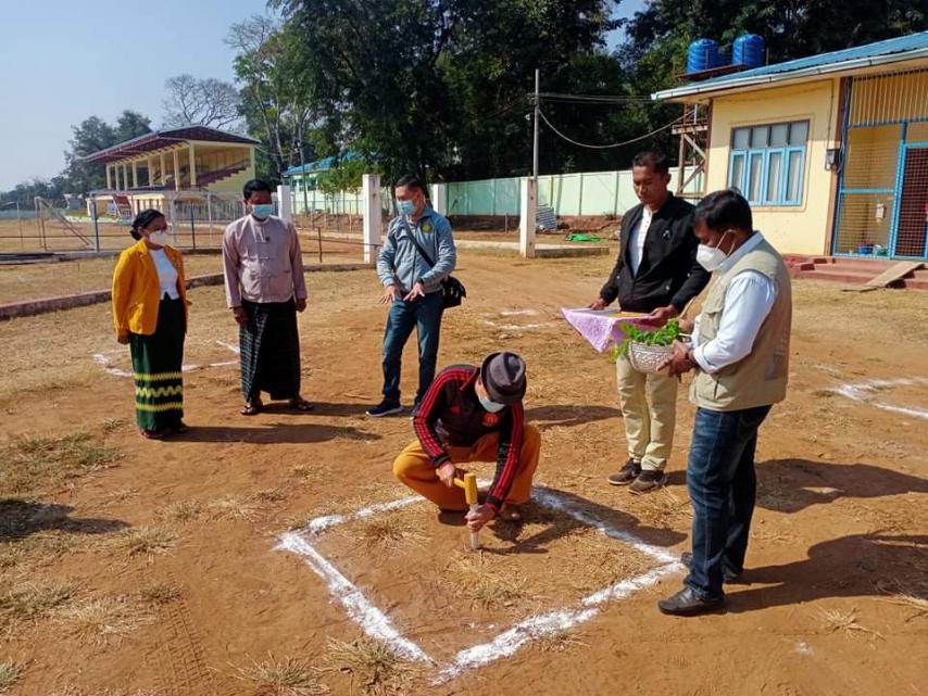 ရှေးဦးစွာ အားကစားရုံဆောက်လုပ်မည့် မြေနေရာကို တာဝန်ရှိသူများက ကြည့်ရှုစစ်ဆေးကြပြီး အမှတ် (၁) ပြည်နယ် လွှတ်တော် ကိုယ်စားလှယ် ဦးအောင်မျိုးကျော်၊ လင်းခေးခရိုင် အားကစားနှင့်ကာယပညာဦးစီးဌာန၊ လက်ထောက် ညွှန်ကြားရေးမှူး ဒေါ်ခင်လေးမွန်၊ မြို့နယ် တည်ဆောက်ရေးလုပ်ငန်းများ စိစစ်ကြီးကြပ်ရေး ကော်မတီအဖွဲ့ဝင်များ၊ မြို့နယ်ဆရာဝန်ကြီး၊ မြို့နယ်ပညာရေးမှူးတို့က ပန္နက်ရိုက်ခဲ့ကြကာ မင်္ဂလာအမွှေးနံ့သာရည်များ ပက်ဖျန်းခဲ့ကြသည်။