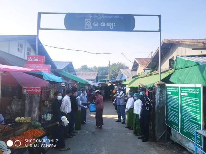 ထိုသို့ ဆောင်ရွက်ရာတွင် မြို့နယ်အဆင့် ကိုဗစ်-၁၉ ထိန်းချုပ်ရေးနှင့် အရေးပေါ် တုံ့ပြန်ရေး ကော်မတီဝင်များနှင့် မြို့နယ်စည်ပင်သာယာရေး အဖွဲ့တို့ပူးပေါင်း၍ မြို့မဈေးအတွင်းရှိ ဆိုင်ခန်းများ၊ ဈေးခုံတန်းများတွင် ရောင်းချနေသည့် ဈေးသည် များအား ကိုဗစ်-၁၉ရောဂါ ကြိုတင်ကာကွယ်ရေးအတွက် ကျန်းမာရေးနှင့် အားကစားဝန်ကြီးဌာန မှ ထုတ်ပြန် ထား သည့် စည်းကမ်းချက်နှင့်အညီ လိုက်နာမှုရှိစေရေး နှင့် ဈေးရောင်း၊ ဈေးဝယ်ပြည်သူများအား ကိုယ်အပူချိန် တိုင်းတာခြင်းများနှင့်နှာခေါင်းစည်း(Mask) များ စနစ်တကျ တပ်ဆင်သွားလာကြရန် အသိပညာပေးစစ်ဆေး ဆောင်ရွက်လျက်ရှိကြောင်း သိရသည်။