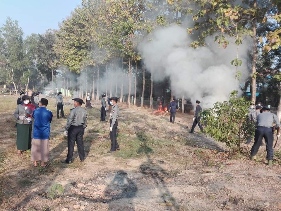 သန့်ရှင်းရေးဆောင်ရွက်ရာတွင် မြို့နယ် ကိုဗစ်-၁၉ ထိန်းချုပ်ရေးနှင့်အရေးပေါ်တုံ့ပြန်ရေး ကော်မတီ ဥက္ကဋ္ဌ မြို့နယ်အုပ်ချုပ်ရေးမှူး ဦးကျော်ဇင်ဦး၊ ကော်မတီအတွင်းရေးမှူး မြို့နယ်ရဲတပ်ဖွဲ့မှူး ရဲမှူးထွန်းလွင်နှင့် တပ်ဖွဲ့ဝင်များ၊ မီးသတ်တပ်ဖွဲ့ဝင်များ၊ ဌာနဆိုင်ရာများ၊ စေတနာ့ဝန်ထမ်းများ၊ လူမှုရေး အသင်းအဖွဲ့များ ပူးပေါင်းဆောင်ရွက်ခဲ့ကြသည်။ အဆိုပါ အ.လ.က ချမ်းမြသာမြေကျောင်းတွင် Quarantine Center အဖြစ် ၂၀၂၀ ပြည့်နှစ် နိုဝင်ဘာလ ၁၃ ရက်နေ့မှ စတင်ဆောင်ရွက်ခဲ့ခြင်းဖြစ်ပြီး ယခုအခါတွင် ကျောင်း ပြုပြင်ရေး လုပ်ငန်းများ ဆောင်ရွက်နိုင်ရန်အတွက် Quarantine ထားရှိသူများအား ယမန်နေ့ ညနေပိုင်းက သီတဂူ စက္ခုဒါနဆေးရုံသို့ လူမှုရေးအသင်းအဖွဲ့များမှ မော်တော်ယာဉ်များဖြင့် ပြောင်းရွှေ့ထားရှိခဲ့ကြောင်း သိရသည်။
