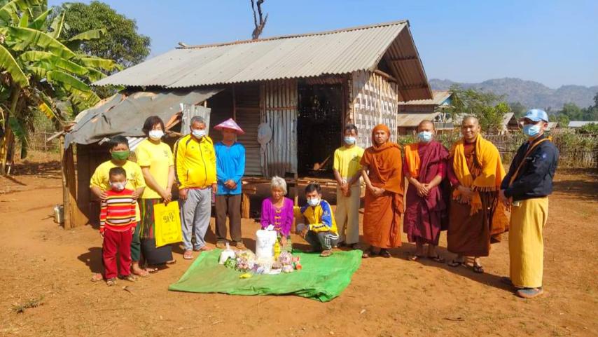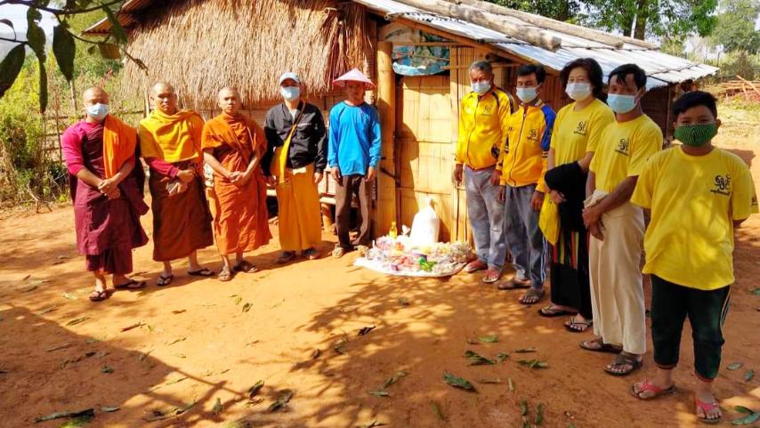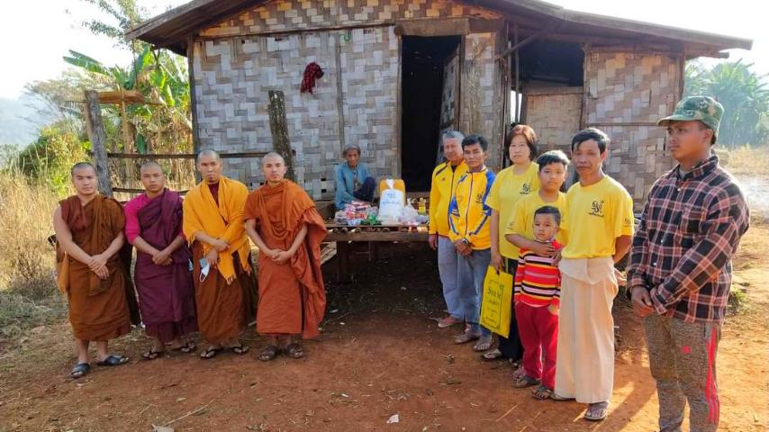 ရှမ်းပြည်နယ်(တောင်ပိုင်း) လင်းခေးခရိုင်၊ မိုးနဲမြို့နယ် စိန်တောင်ကျောင်းတိုက်ဆရာတော် ဦးဆောင်သော ရွှေပိုးပရဟိတအသင်းမှ မိုးနဲမြို့ နယ်အတွင်းရှိ ကျေးရွှာများတွင် နေထိုင်လျက်ရှိသော မိသားစုဝင်မရှိ၊ ကျောထောက်နောက်ခံ သားသမီး၊ ဆွေမျိုးရင်းချာ မရှိဘဲ အသက်အရွယ် အိုမင်းခြင်းကြောင့် အင်အားရှိသလောက်နှင့် ဝမ်းရေးကိုခက်ခဲစွာ ဖြေရှင်းနေရသည့် သက်ကြီးဘိုးဘွားခြောက်ဦးနှင့် ကိုယ်အင်္ဂါ ချို့တဲ့ပြီး ဝင်ငွေလုံးဝမရှိသော၊ ကျောထောက်နောက်ခံမရှိသော မသန်စွမ်းသူ သုံးဦး စုစုပေါင်း ကိုးဦးတို့အား အခြေခံ စားသောက်ကုန်များကို ယနေ့ နံနက် ၇ နာရီ အချိန်က ကျေးရွာများအရောက် သွားရောက်လှူဒါန်း ထောက်ပံ့ပေးခဲ့ကြောင်း သိရသည်။
