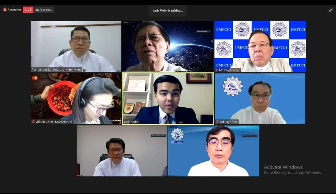 စီမံကိန်း၊ ဘဏ္ဍာရေးနှင့် စက်မှုဝန်ကြီးဌာန ဒုတိယဝန်ကြီး ဒေါက်တာမင်းရဲပိုင်ဟိန်းမှ COVID-19 Economic Relief Plan နဲ့ ပတ်သက်၍ ပြောကြားခဲ့ပြီး ဒီဂျစ်တယ်နည်းပညာ ကဏ္ဍများစွာအရေးပါ သည့်အတွက် ယခုလို ဆွေးနွေးပွဲဖြစ်မြောက်ရေးအတွက် ပံ့ပိုးကူညီကြသည့် US-ASEAN Business Council ၊ UMFCCI ၊ Master Card တို့ကို ကျေးဇူးတင်ရှိပါကြောင်း ပြောကြားခဲ့သည်။