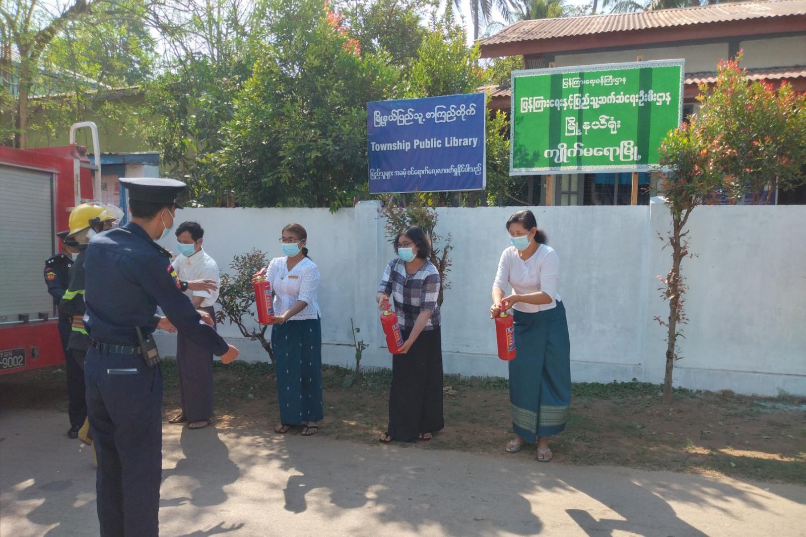 ဌာနဆိုင်ရာရုံးများတွင် မီးသတ်ဆေးဗူးများထားရှိပြီး လက်တွေ့အသုံးပြုတတ်စေရန် မြို့နယ် မီးသတ်ဦးစီးမှူးနှင့် မီးသတ်တပ်ဖွဲ့ဝင်များက လက်တွေ့သရုပ် ပြသပေးခြင်းဖြစ်ပြီး မီးသတ် ဆေးဗူးကို စနစ်တကျကိုင်တွယ် အသုံးပြု တတ်စေရန်၊ ရုတ်တရက်မီးဘေးအန္တရာယ်နှင့် ကြုံလာပါက မီးသတ်ဆေး ဗူးဖြင့် မီးငြိမ်းသတ်နိုင်ရန် ရည်ရွယ်ချက်ဖြင့် ယခုလို ဌာနဆိုင်ရာ ရုံးများအရောက် မြေပြင်ကွင်းဆင်းပြသ ရခြင်းဖြစ်ကြောင်း မြို့နယ်မီးသတ်ဦးစီးမှူး ဦးသန်း ထိုက်ကပြောသည်။
