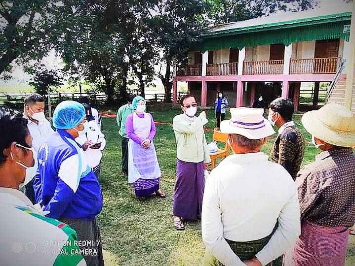 ဆက်လက်၍ မြို့နယ်ကိုဗစ်-၁၉ထိန်းချုပ်ရေးနှင့် အရေးပေါ် တုံ့ပြန်ရေးကော်မတီဥက္ကဋ္ဌနှင့် တာဝန်ရှိသူများသည် ကျောက်ခဲတက်ကျေးရွာနှင တုံကျေးရွာများတွင် Quarantine ဝင်နေသူများ Volunteer နှင့် ကျန်းမာရေးဝန်ထမ်းမျာအား လက်သန့်ဆေးရည်များ နှာခေါင်းစည်း Mask များ၊ လက်အိတ်များ၊ ခေါင်းစွပ်များကို ထောက်ပံပေးအပ်ကာ ကိုဗစ်-၁၉ ကပ်ရောဂါနှင့် ပတ်သက်၍ အသိပညာပေးဆွေးနွေးခဲ့ကြောင်း သိရှိရ သည်။
