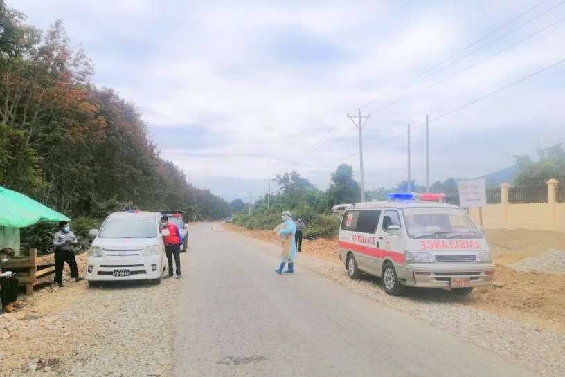 ထို့နောက် ဆေးကုသမှုဆက်လက်ခံယူနိုင်ရေးအတွက် ဇန်နဝါရီ ၁၉ ရက် နံနက်ပိုင်းတွင် မြို့နယ် ကြက်ခြေနီသူနာပြုတပ်ဖွဲ့မှ မော်တော်ယာဉ်ဖြင့် မိုင်းယောင်းမြို့နယ် ကိုဗစ်-၁၉ ရောဂါ ယာယီဆေးကုသဆောင်သို့ ပို့ဆောင်ပေးခဲ့သည်။