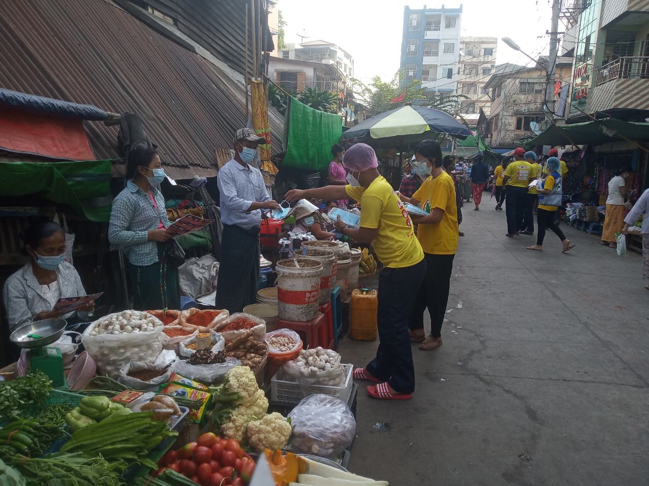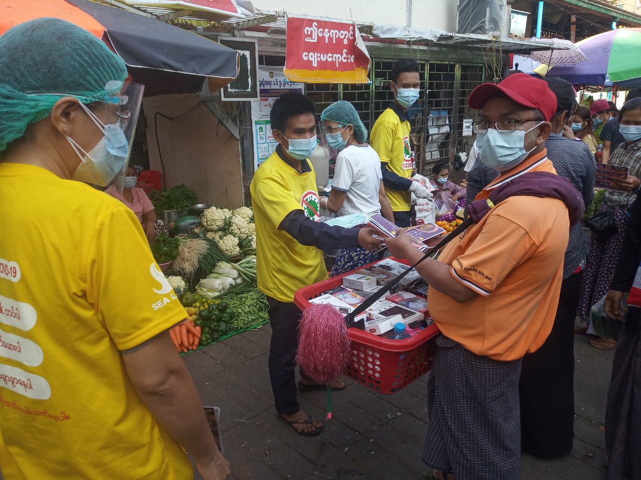 ရန်ကုန်အနောက်ပိုင်းခရိုင်၊ စမ်းချောင်းမြို့နယ်တွင် ကိုဗစ်-၁၉ ရောဂါ ကူးစက် ပြန့်နှံ့မှု ကြိုတင် ကာကွယ်နိုင်ရေးအတွက် ရပ်ကွက်အတွင်းရှိ အိမ်ထောင်စုများနှင့် လမ်းသွား လမ်းလာ ပြည်သူများ၊ စျေးရောင်းစျေးဝယ်သူများအား Mask စနစ်တကျ တပ်ဆင်စေ ရေးအတွက် Mask များ ဖြန့်ဝေခြင်းနှင့် အသိပညာပေးပြု လုပ်ဆောင်ရွက်ခြင်းကို ယနေ့နံနက် (၈)အချိန်က ဆောင်ရွက်ခဲ့ကြောင်း သိရသည်။