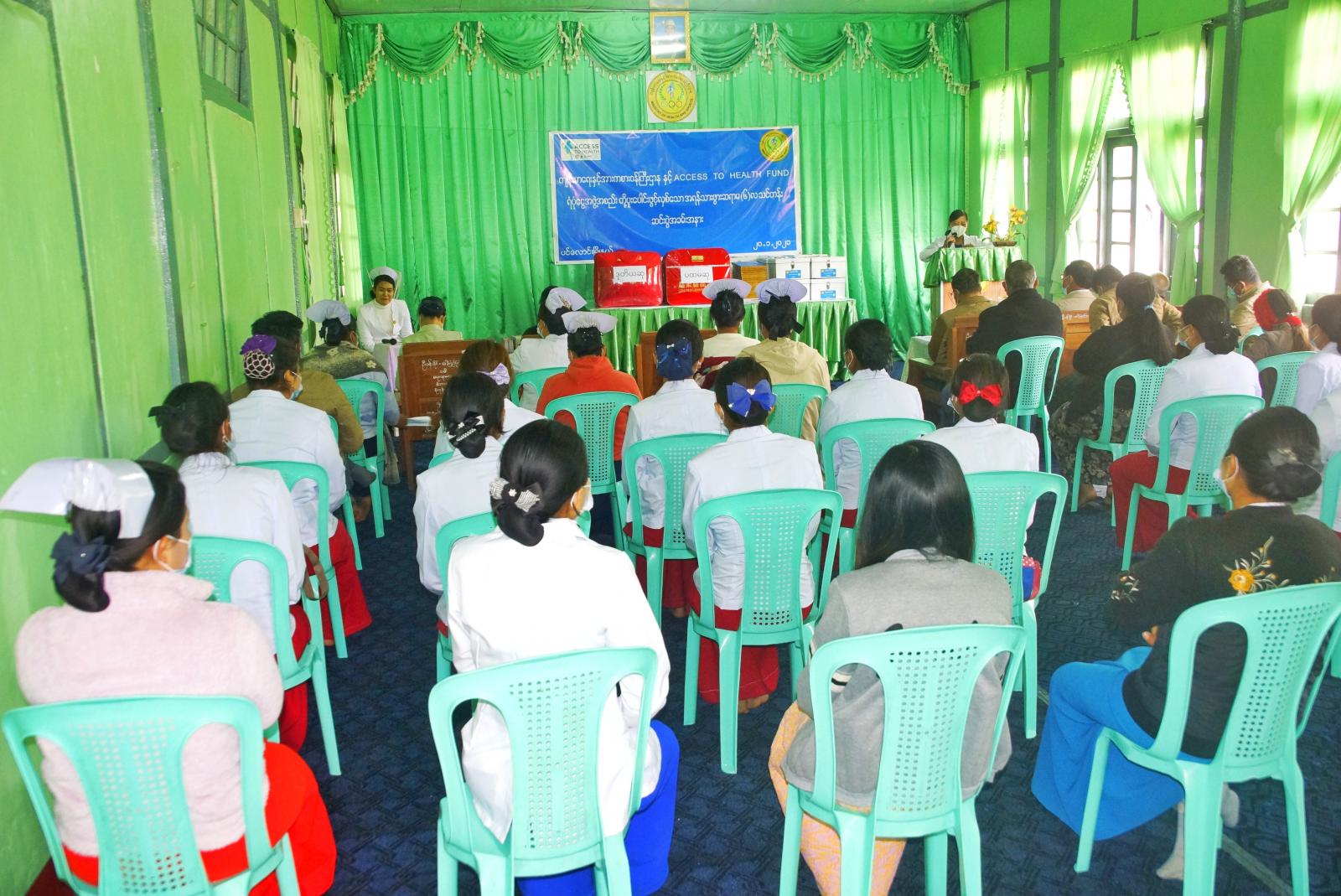 ကျန်းမာရေးနှင့်အားကစားဝန်ကြီးဌာနနှင့် ACCESS TO HALTH FUND ရန်ပုံငွေအဖွဲ့အစည်းတို့ ပူးပေါင်းဖွင့်လှစ်သော အရန်သားဖွားဆရာမ (၆)လ သင်တန်းဆင်းပွဲအခမ်းအနားကို ရှမ်းပြည်နယ် တောင်ပိုင်း ပအိုဝ်းကိုယ်ပိုင်အုပ်ချုပ်ခွင့်ရဒေသ ပင်လောင်းမြို့နယ် ပြည်သူ့ ကျန်းမာရေးနှင့်ကုသရေးဦးစီးဌာန အစည်း အဝေးခန်းမတွင် ယနေ့နံနက်ပိုင်း က ပြုလုပ်သည်။