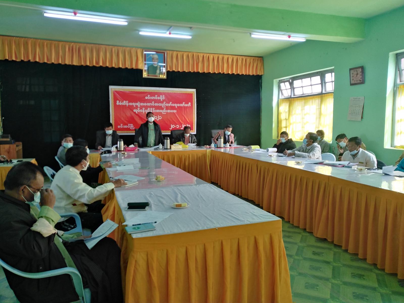 ချင်းပြည်နယ် မင်းတပ်မြို့ မြို့နယ်အထွေထွေ အုပ်ချုပ်ရေး ဦးစီးဌာန အစည်းအဝေးခန်းမ၌ ယနေ့ မွန်းလွဲ ၁ နာရီတွင် ၂၀၂၁-၂၀၂၂ စီမံကိန်းရေးဆွဲ အကောင်အထည်ဖော်ရေး ကော်မတီ လုပ်ငန်းညှိနှိုင်း အစည်းအဝေး ကျင်းပသည်။
