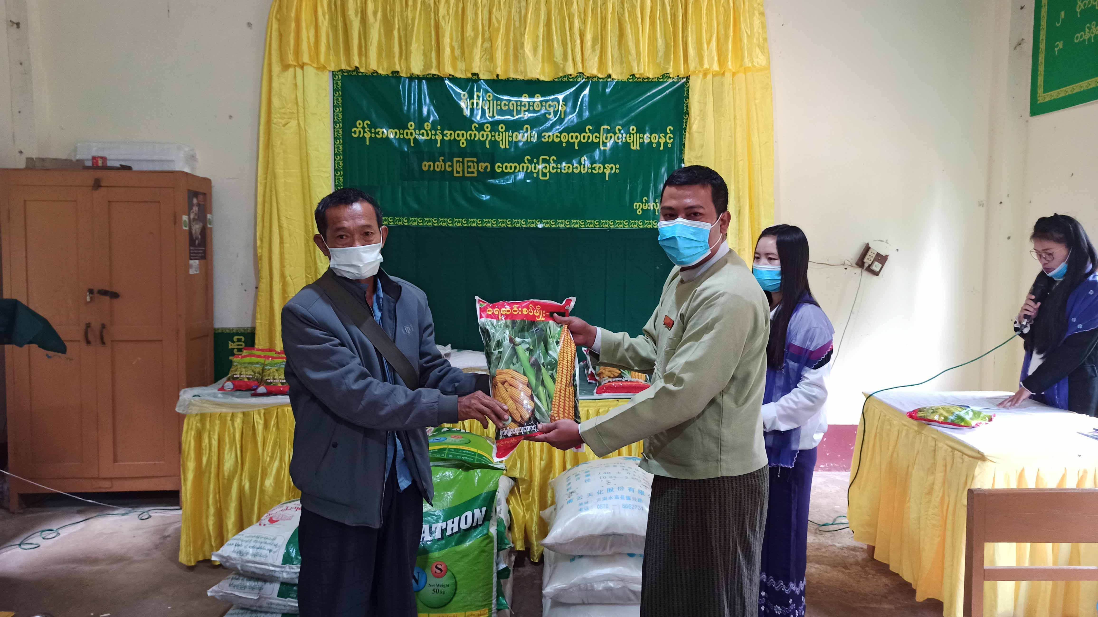 ရှမ်းပြည်နယ်(မြောက်ပိုင်း)၊ ကွမ်းလုံမြို့နယ် စိုက်ပျိုးရေးဦးစီးဌာနမှ ကျေးရွာတောင်သူများအား ဘိန်းအစားထိုးသီးနှံဖြစ်သည့် အထွက်တိုး မျိုးစပါး၊ အစေ့ထုတ်ပြောင်းမျိုးစေ့နှင့် ဓာတ်မြေသြဇာများ ထောက်ပံ့ခြင်းအစီအစဉ်ကို ယနေ့နံနက် (၁၀) နာရီအချိန်ခန့် က စိုက်ပျိုးရေး ဦးစီးဌာနရုံး၌ ဆောင်ရွက်ခဲ့သည်။