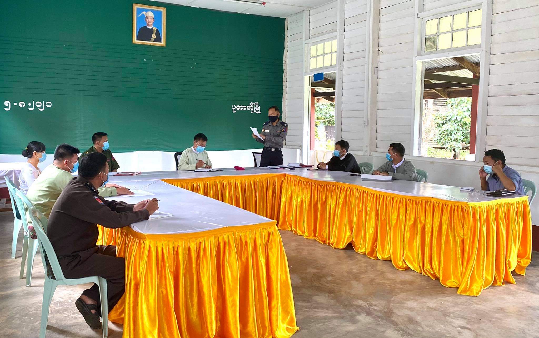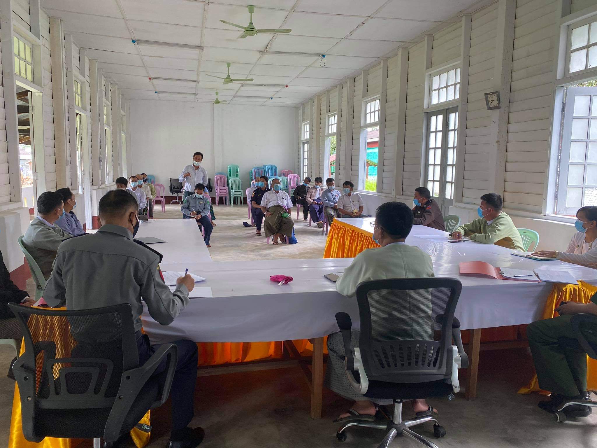 ဆက်လက်၍ မြို့နယ်ရွေးကောက်ပွဲဆိုင်ရာ လုံခြုံရေးစီမံခန့် ခွဲမှုကော်မတီအဖွဲ့၀င် ဗိုလ်မှူးထွန်းလင်းနိုင်က နယ်မြေလုံခြုံရေး စတင်ဆောင်ရွက် နေမှုများနှင့် ဆက်သွယ်ရေးခက်ခဲသော မဲရုံများအတွက် ဆက်သွယ်ရေးစက်များ ဖြင့်ပံ့ပိုးကူညီပေးမည့် အစီအစဉ်များကို ရှင်းလင်းဆွေးနွေးပြီး မြို့နယ်ရွေးကောက်ပွဲကော်မရှင်အဖွဲ့ခွဲ အတွင်းရေးမှူး ဦးရှဘောင်ဖုန်၀င့်နှင့်အစည်းအဝေး တက်ရောက်လာကြ သောဌာနဆိုင်ရာများ၊ မြို့မိမြို့ဖများက ယခင်ရွေးကောက်ပွဲများ အတွေ့အကြုံနှင့်ယှဉ်ကာ လုံခြုံရေးနှင့် ပတ်သက်၍ လိုအပ်ချက်များကို အသီးသီးဆွေးနွေးကြရာ မြို့နယ်အုပ်ချုပ်ရေးမှူးက လိုအပ်သည်များကို ပေါင်းစပ် ညှိနှိုင်း ပေးခဲ့သည်။