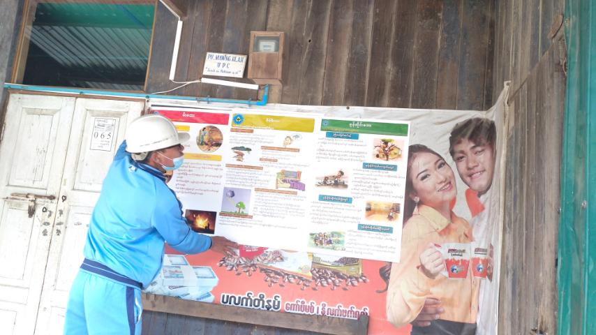 ထိုသို့ ဆောင်ရွက်ရာတွင် ကိုဗစ်-၁၉ ရောဂါနှင့်ပတ်သက်ပြီး ကျန်းမာရေးနှင့် အားကစားဝန်ကြီးဌာန၏ လမ်းညွှန်ချက်များကို ပြည်သူများ ကျယ်ကျယ်ပြန့်ပြန့်သိရှိပြီး လိုက်နာဆောင် ရွက်နိုင်ရန် အသိပညာပေး ဆော်သြခြင်းဖြစ်သည်။ ထို့အပြင် မြေပြိုဘေး၊ ငလျင်ဘေး၊ မီးဘေး၊ ဘေးကင်းလုံခြုံ အသိပညာပေး ပို့စတာများကို ကပ်ထားခြင်း၊ လက်ကမ်းစာစောင်များ ဖြန့်ဝေခြင်းနှင့် ပါးစပ်နှင့်နှာခေါင်းစည်းများ ဖြန့်ဝေခြင်း များ ဆောင်ရွက်ခဲ့ကြကြောင်း သိရသည်။