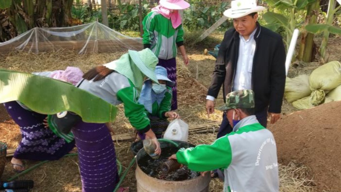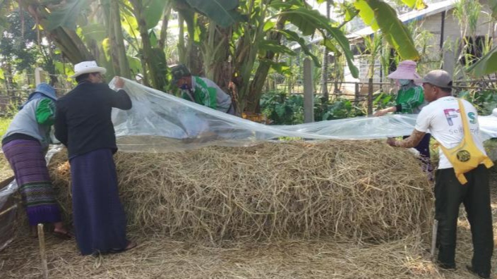 ရှမ်းပြည်နယ်(တောင်ပိုင်း) လင်းခေးခရိုင်၊ မိုးနဲမြို့နယ် စိုက်ပျိုးရေးဦးစီးဌာန မြို့နယ်ဦးစီးမှူး ဦးဆောင်၍ ဝန်ထမ်းများနှင့်အတူ အီးအမ်(EM) ဘိုကာရှီမြေဆွေးပုံ ပြုလုပ်သုံးစွဲနည်းတောင်သူ ပညာပေးခြင်းနှင့် လက်တွေ့သရုပ်ပြသခြင်းကို ယနေ့နံနက် ၈ နာရီအချိန်က နမ့်မော်ဆွမ့် ကျေးရွာနေတောင်သူ စိုင်းလမ်၏ခြံဝင်းအတွင်း၌ ဆောင်ရွက်ခဲ့ကြောင်း သိရသည်။