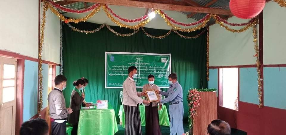 ဆက်လက်၍ ပြည်နယ်ပညာရေးမှူး ဦးဝင်းမောင်က အဖွင့်အမှာစကားပြောကြားပြီး ကျောင်းဆောင်သစ်နှင့် သက်ဆိုင်သော စာရွက်စာတမ်းများအား နီဗွန်ဖောင်ဒေးရှင်းအဖွဲ့မှ ဒေါ်အေးအေးသန်းက ပေးအပ်ရာ ပြည်နယ်ပညာရေးမှူးမှ လက်ခံရယူပြီး ကျောင်းဆောင်သစ် လွှဲပြောင်းပေးအပ်ပွဲအထိမ်းအမှတ် အလံများအား နေရာအရောက်ပေးအပ်ခဲ့ကြောင်း သိရသည်။