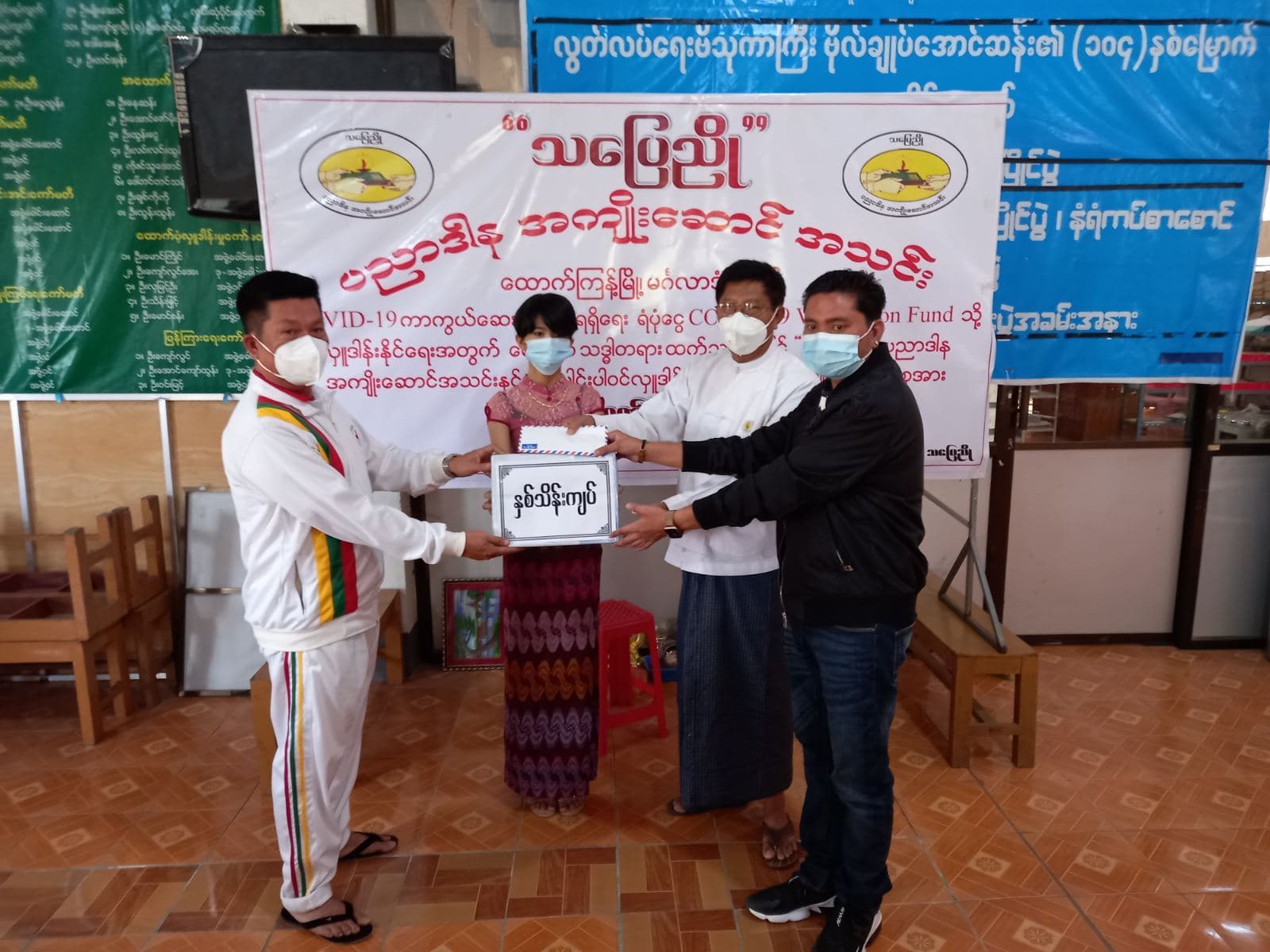 ရန်ကုန်တိုင်းဒေသကြီး၊ မြောက်ပိုင်းခရိုင်၊ မင်္ဂလာဒုံမြို့နယ် ထောက်ကြန့် “သပြေညို” ပညာဒါန အကျိုးဆောင်အသင်းမှ ခရိုင် ကြက်ခြေနီ သူနာပြုတပ်ဖွဲ့ မြို့နယ်ကြက်ခြေနီသူနာပြုတပ်ဖွဲ့နှင့် ပရဟိတလူမှု ကူညီရေးအသင်း (၆)သင်းတို့ကို အလှူငွေကျပ် စုစုပေါင်း (၁၈)သိန်း ပေးအပ် လှူဒါန်းပွဲကို ယမန်နေ့က အဆိုပါ သပြေညိုပညာဒါန အကျိုးဆောင်အသင်း အစည်းအဝေး ခန်းမ၌ ကိုဗစ်-၁၉ ရောဂါ ကာကွယ်ရေးအတွက် ကျန်းမာရေးနှင့်အားကစား ဝန်ကြီးဌာနက ထုတ်ပြန်ထားသည့် စည်းကမ်းလမ်းညွှန်ချက် နှင့် အညီ ကျင်းပခဲ့ သည်။