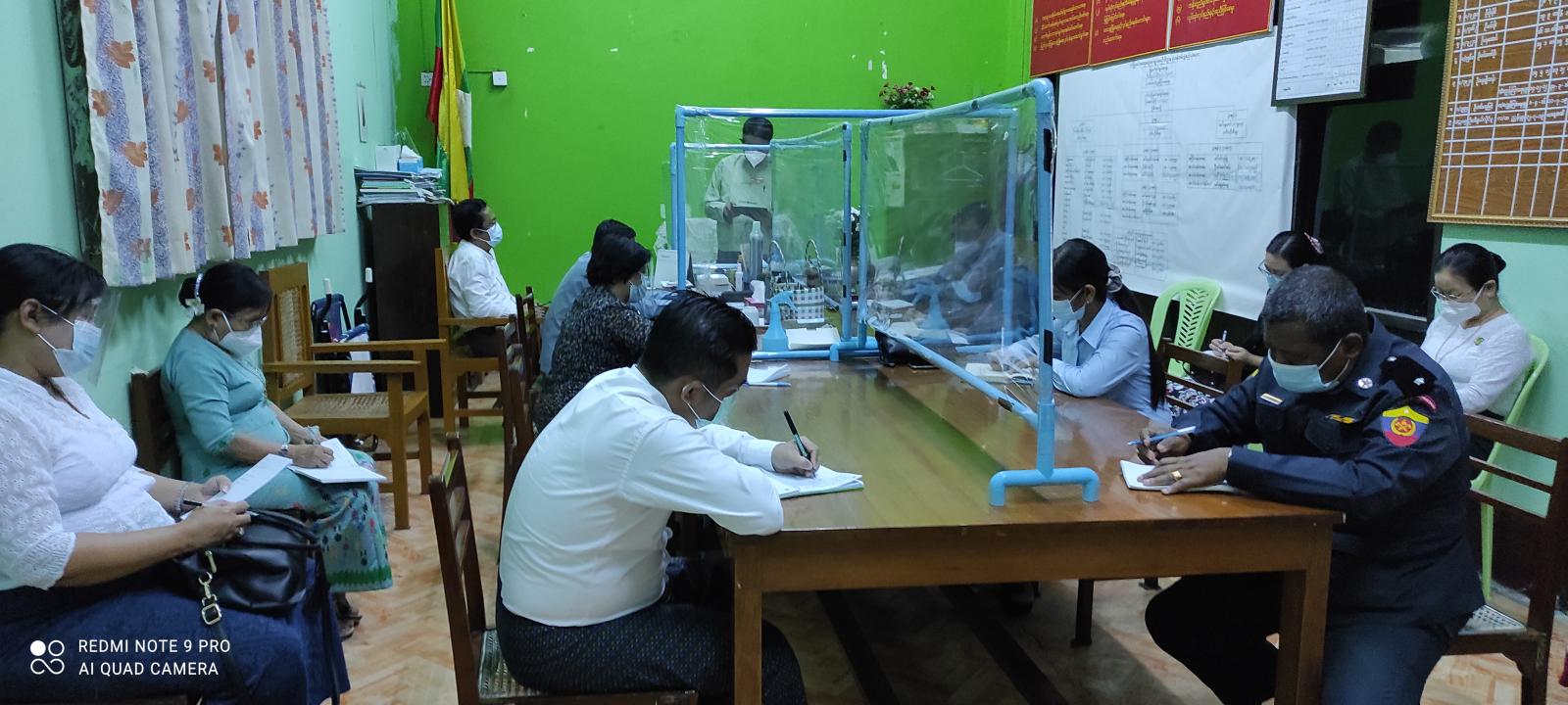 ဆက်လက်၍ ဒု-မြို့နယ်အုပ်ချုပ်ရေးမှူး ဦးအောင်ကိုကိုမှ ရပ်ကွက် (သို့) ကျေးရွာ အုပ်ချုပ်ရေးမှူး အသစ်ရွေးချယ် ခန့်ထားဆောင်ရွက်နိုင်ရေးအတွက် မြို့နယ်အဆင့် ဌာနဆိုင်ရာ အကြီးအကဲများအား မြို့နယ် ကြီးကြပ် ရေးအဖွဲ့မှ ဆောင်ရွက်ရမည့်လုပ်ငန်းစဉ်များ နှင့် ဒဂုံမြို့နယ်အတွင်းရှိ ရပ်ကွက် ၅ခုအား အဖွဲ့နှစ်ဖွဲ့ခွဲ၍ ကွင်းဆင်း ကြီးကြပ် ဆောင်ရွက် သွားမည်ဖြစ်ကြောင်း ရှင်းလင်းဆွေးနွေး ပြောကြားပါသည်။