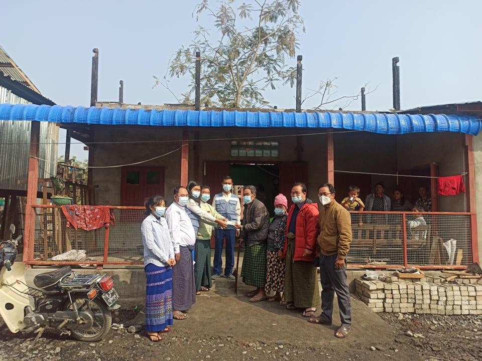 ထိုသို့ပေးအပ်ထောက်ပံ့ရာတွင် ကလေးခရိုင်ဘေးအန္တရာယ်ဆိုင်ရာ စီမံခန့်ခွဲမှုဦးစီးဌာနမှ လက်ထောက်ညွှန်ကြားရေးမှူး ဦးကျော်ဌေးနိုင်နှင့်ဝန်ထမ်းများက ဆန်ရိက္ခာအတွက် (၄၂၀၀) ကျပ်၊ အိမ်ဆောက်ပစ္စည်းပ ျက်စီးဆုံးရှုံးမှုအတွက် ကျပ်ငွေ (၉၀၀၀၀) စုစုပေါင်း (၉၄၂၀၀) ကျပ်အား ကယ်ဆယ်ရေး စည်းမျဉ်းစည်းကမ်းများနှင့်အညီ ပေးအပ် ထောက်ပံ့ကြရာ မီးဘေးသင့် အိမ်ထောင်စုမှ ဦးဆန်းလှေခုပ်က လက်ခံရယူခဲ့သည်။