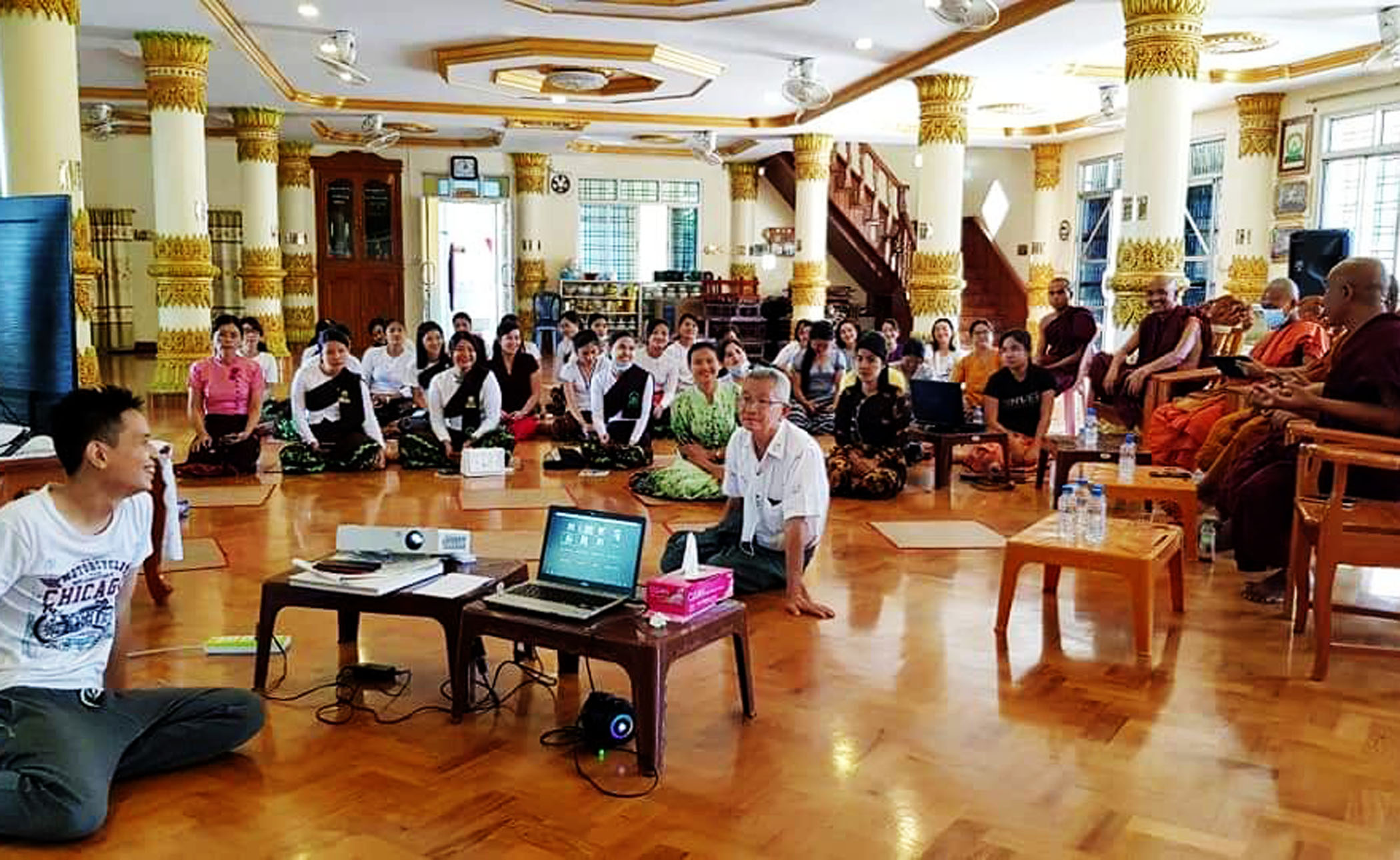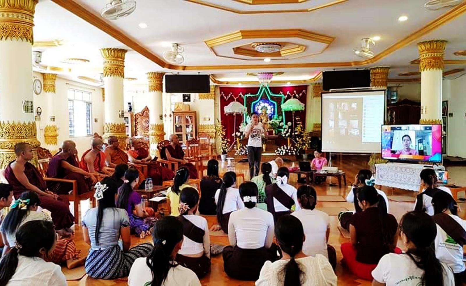 ကျောင်းသားကျောင်းသူကလေးငယ်များအား ဗုဒ္ဓဓမ္မစာပေများ တက်ရောက်သင်ကြား လိုသည့်စိတ်များ တိုးပွားလာရေး၊ ငယ်ရွယ်စဉ် ကလေးဘဝမှစကာ မြန်မာ့ယဉ်ကျေးမှုအစဉ်အလာကောင်းများ အားတန်ဖိုးထား ထိန်းသိမ်းတတ်စေရေး၊ ကျောင်းသားကျောင်းသူများ ဘာသာသာသနာအား အစဉ်စောင့်ရှောက်ထိန်းသိမ်း လိုသည့်စိတ်များ ရင့်သန်ခိုင်မာလာရေး ရည်ရွယ်ဖွင့်လှစ်ပို့ချသင်ကြားလျှက်ရှိသည့် ဓမ္မစကူးဖေါင်ဒေးရှင်း သင်တန်းများအား ကိုဗစ်-၁၉ ထိန်းချုပ်မှုကာလတစ်လျောက် ယာယီပိတ်ထားရာမှ နည်းပညာအကူအညီဖြင့် သင်တန်းများပြန်လည်ဖွင့်လှစ်ပို့ချသင်ကြားပေးနိုင်ရေး သင်တန်းနည်းပြများအား ကျွမ်းကျင်ပညာရှင်များမှ zoom application အသုံးပြုကာ အွန်လိုင်းမှတဆင့် သင်တန်းသားကလေးငယ်များအား မိမိအိမ်တွင် နေထိုင်ရင်း သင်ကြားပို့ချမှုလုပ်ငန်းများအား ဆောင်ရွက်နိုင်ရန် zoom application သုံးစွဲချိတ်ဆက်မှု နည်းပညာများအား မိတ်ဆက်ရှင်းလင်းမျှဝေပေးခြင်းဖြစ်သည်။