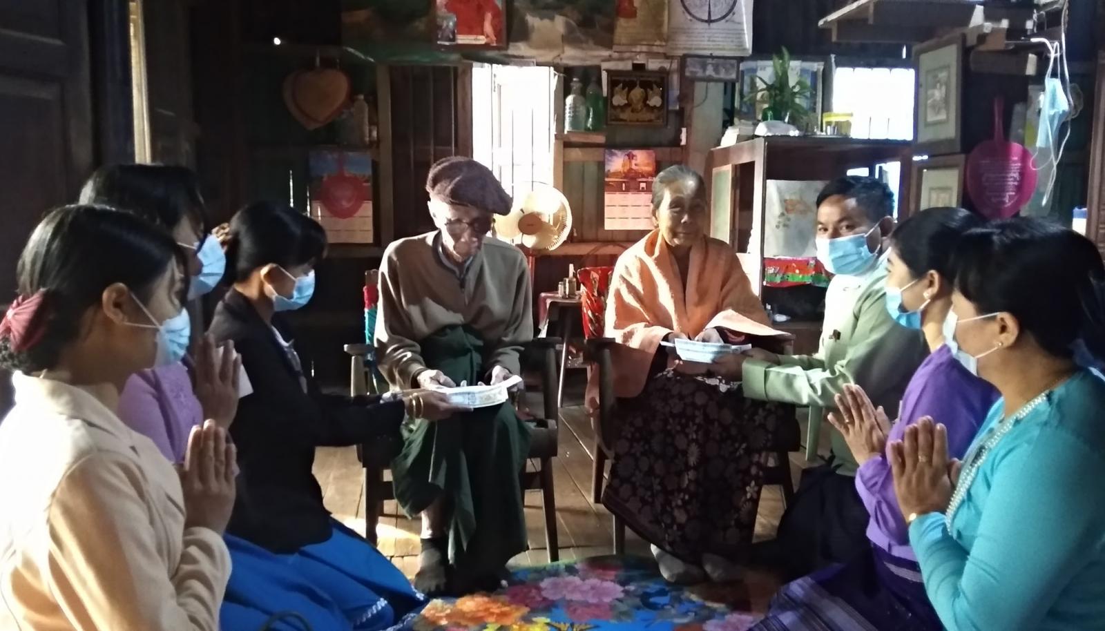 အဆိုပါထောက်ပံ့ပေးအပ်ခြင်းကို မြို့နယ်အုပ်ချုပ်ရေးမှူး ဦးဝင်းမြင့်၊ လူမှုဝန်ထမ်းဦးစီးဌာန မြို့နယ်ဦးစီးမှူး ဒေါ်ခင်နှင်းနှင်းယုနှင့် ဝန်ထမ်းများ၊ ရပ်ကွက်/ကျေးရွာ အုပ်ချုပ်ရေးမှူး နှင့်အဖွဲ့ဝင်များ၊ မိခင်နှင့်ကလေးစောင့်ရှောက်ရေး အသင်း ဥက္ကဋ္ဌ ဒေါ်သွယ်သွယ်ဇင်နှင့် အမျိုးသမီး ရေးရာအဖွဲ့ဝင်များက ကိုဗစ်-၁၉ ဖြစ်ပွားနေသည့်ကာလ အသက် (၁၀၀)နှစ်နှင့် အထက်အဘိုးအဘွားများအား ထပ်ဆောင်းထောက်ပံ့ငွေ (၃၀,၀၀၀)ကျပ်ကို မြို့နယ်အတွင်းရှိ အဘိုး အဘွား (၅)ဦးကို လည်းကောင်း၊ အသက်(၈၅)နှစ်နှင့်အထက်အဘိုးအဘွားများအား လူမှုရေးပင်စင် (၃၀,၀၀၀) ကျပ်ကို လည်းကောင်း ယနေ့နံနက်က မြို့ပေါ်ရပ်ကွက်များသို့ လိုက်လံ ထောက်ပံ့ ပေးအပ်ခဲ့ကြသည်။