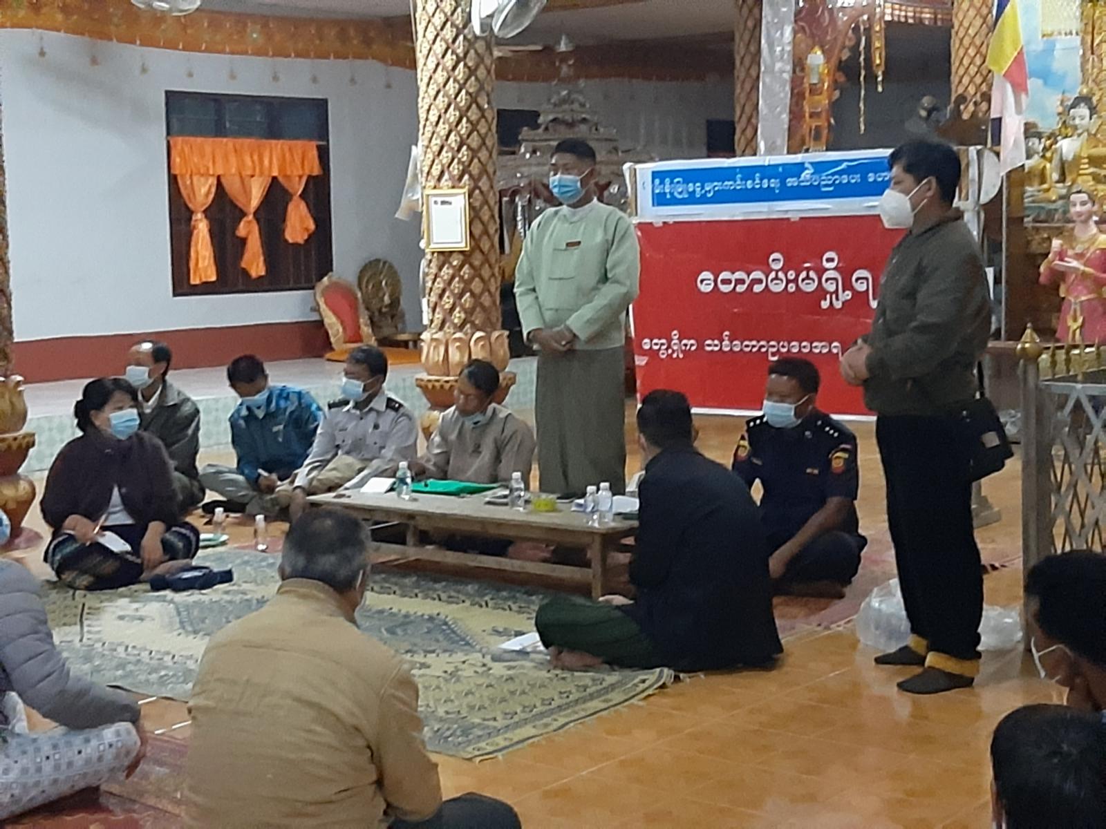 ရှေးဦးစွာ မြို့နယ်အုပ်ချုပ်ရေးမှူး ဦးသက်လွင်က ရပ်ကွက်(သို့မဟုတ်) ကျေးရွာအုပ်စု အုပ်ချုပ်ရေးမှူး အသစ် ရွေးချယ်ခန့်ထားရေးအတွက် ဥပဒေ၊ နည်းဥပဒေနှင့် လုပ်ထုံးလုပ်နည်းအတိုင်း ဆောင်ရွက် စေရေး၊ ဒေသတွင်း မီးခိုးမြူငွေ့ ကင်းစင်ရေးအတွက် တောင်ယာလုပ်ကိုင်သူများ လိုက်နာဆောင်ရွက်ရမည့် အချက်များ၊ တောမီးရှို့ခြင်းကြောင့် သစ်တော ပြုန်းတီးမှုမှ ကြုံတွေ့ရမည့်အခက်အခဲများ၊ မူးယစ် ဆေးဝါးအန္တရာယ် အသိပညာပေးခြင်းတို့ကို ဆွေးနွေးပြောကြား ခဲ့သည်။