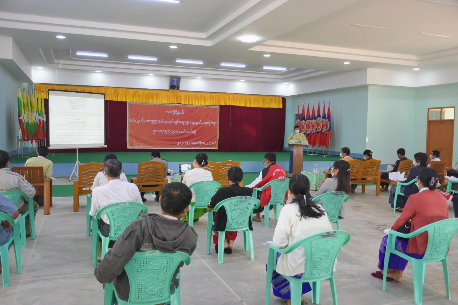 မွန်ပြည်နယ်၊ သထုံမြို့နယ်တွင် ရပ်ကွက်/ကျေးရွာအုပ်စု အုပ်ချုပ်ရေးမှူးများ စိစစ်ရွေးချယ်ခြင်း နှင့် စပ်လျဉ်း၍ ပြင်ဆင် ထားသည့် ဥပဒေ၊ နည်းဥပဒေများ ရှင်းလင်းဆွေးနွေးပွဲ ကို ယနေ့နံနက် ၁၀ နာရီက မြို့နယ်အထွေထွေ အုပ်ချုပ်ရေး ဦးစီးဌာနခန်းမ၌ ကျင်းပပြုလုပ်သည်။