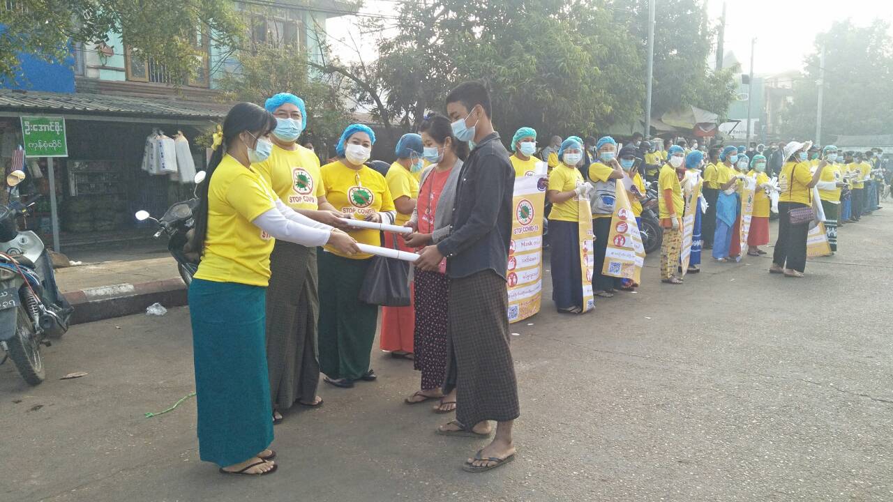 အဆိုပါ ကိုဗစ်-၁၉ ရောဂါ အသိပညာပေးလှုပ်ရှားမှု Yellow Colour Campaign ကို မြို့နယ် ကိုဗစ်-၁၉ ထိန်းချုပ်ရေးနှင့် အရေးပေါ်တုံ့ပြန်ရေးကော်မတီဥက္ကဋ္ဌ ဦးအောင်ကျော်စိုး ဦးဆောင်သော ကော်မတီဝင်များ၊ လူမှုရေးအသင်းအဖွဲ့များ က “STOP COVID-19” ၊ “Mask တပ်ပါ၊ လက်ဆေးပါ၊ ခပ်ခွာခွာနေပါ၊ တစ်ဦးကိုတစ်ဦး အသိပေးပါ၊ သတိပေးပါ” စသည့် စာတန်းပါ အဝါရောင်အင်္ကျီများကို ဆင်တူဝတ်ဆင်ကာ မြို့နယ်အတွင်းရှိ မြို့မဈေး၊ ဆိုက်ကား ဂိတ်၊ ဆိုင်ကယ် ကယ်ရီဂိတ်၊ ကားဂိတ် နှင့် ဖြတ်သန်းသွားလာနေသော ပြည်သူ များအား ကိုဗစ် - ၁၉ ရောဂါအသိပညာပေးလက်ကမ်းပိုစတာများ၊ ပါးစပ်/နှာခေါင်းစည်း (Mask)များကို အခမဲ့ အသိပညာပေးဖြန့်ဝေပေးခဲ့ကြောင်း သိရသည်။