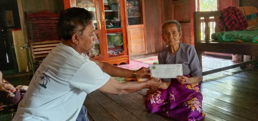 ပလောက်မြို့၊ အမှတ်(၁)ရပ်ကွက်တွင် ကိုဗစ်-၁၉ ရောဂါကာလအတွင်း စီးပွားရေး ကုစားမှု အစီအစဉ်အရ လူမှုဝန်ထမ်းဦးစီးဌာန ရံပုံငွေမှ အသက်(၈၅)နှစ် နှင့်အထက် သက်ကြီး ဘိုး/ဘွားများကို တစ်ဦးလျှင် တစ်လ ၁၀၀၀၀/- နှုန်းဖြင့် (၃)လစာ ၃၀၀၀၀/-ကျပ် ကို သက်ကြီး ဘိုး/ ဘွား(၉)ဦး အတွက် ငွေကျပ် (၂၇၀၀၀၀/) အား ရပ်ကွက် အုပ်ချုပ်ရေးမှူးများ နှင့် တာဝန်ရှိ သူများ က အိမ်တိုင်ရာရောက် ထောက်ပံ့ပေးအပ်ခဲ့ကြောင်း ရပ်ကွက်အုပ်ချုပ်ရေးမှူးထံမှ သိရှိရသည်။