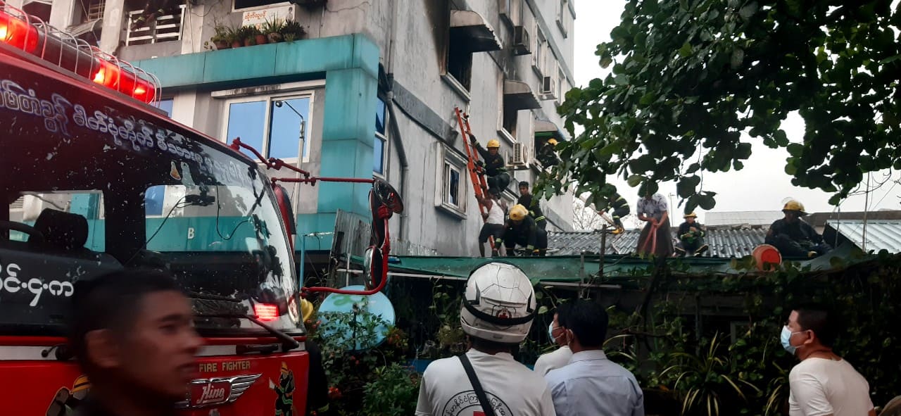 ရန်ကုန်အရှေ့ပိုင်းခရိုင်၊ မြောက်ဥက္ကလာပမြို့နယ် (ဆ)ရပ်ကွက် ခေမာသီ(၃)လမ်း တိုက်အမှတ် ၉၄၊ ဒုတိယထပ် အခန်းအမှတ် (2-H)တိုက်ခန်းအတွင်းတွင် တပ်ဆင်ထားသော ဝါယာကြိုးများမှ ဝါယာရှော့ဖြစ်ပြီး ယနေ့ညနေ ၅နာရီ ၂၅မိနစ်အချိန်တွင် မီးလောင်ကျွမ်းကြောင်း သိရှိရသည်။