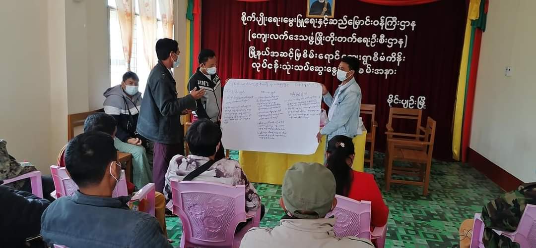 ဆွေးနွေးပွဲတွင် ပြည်သူ့လွှတ်တော်ကိုယ်စားလှယ် ဦးစိုင်းထွန်းစိန် နှင့်မြို့နယ်စီမံခန့်ခွဲမှု ကော်မတီဥက္ကဋ္ဌ ဦးအာကာတင်ဦးတို့က မြစိမ်းရောင်ရန်ပုံငွေဖြင့် ကျေးရွာဖွံ့ဖြိုးရေး လုပ်ငန်းများကို စည်းကမ်းတကျဖြင့် စေတနာထားဆောင်ရွက်ကြရန် လိုအပ်ကြောင်း အမှာစကား ပြောကြားကြပြီး ကျေးလက်ဒေသဖွံ့ဖြိုးတိုးတက်ရေးဦးစီးဌာနမှ မြို့နယ်ဦးစီးမှူး ဦးစိုင်းစိုးဌေးက မြို့နယ်အတွင်း ၂၀၁၄-၂၀၁၅ ဘဏ္ဍာနှစ်မှ ၂၀၂၀-၂၀၂၁ ဘဏ္ဍာနှစ်အထိ အကောင်အထည်ဖော် ဆောင်ရွက်လျက်ရှိသော မြစိမ်းရောင်ကျေးရွာစီမံကိန်းမှာ ၃၁ယူနစ်၊ ကျေးရွာ ၆၁ ရွာရှိကြောင်းနှင့် ၎င်းကျေးရွာများ၏ ရန်ပုံငွေလည်ပတ်နေမှု အခြေအနေတို့အား ရှင်းလင်းဆွေးနွေးခဲ့သည်။