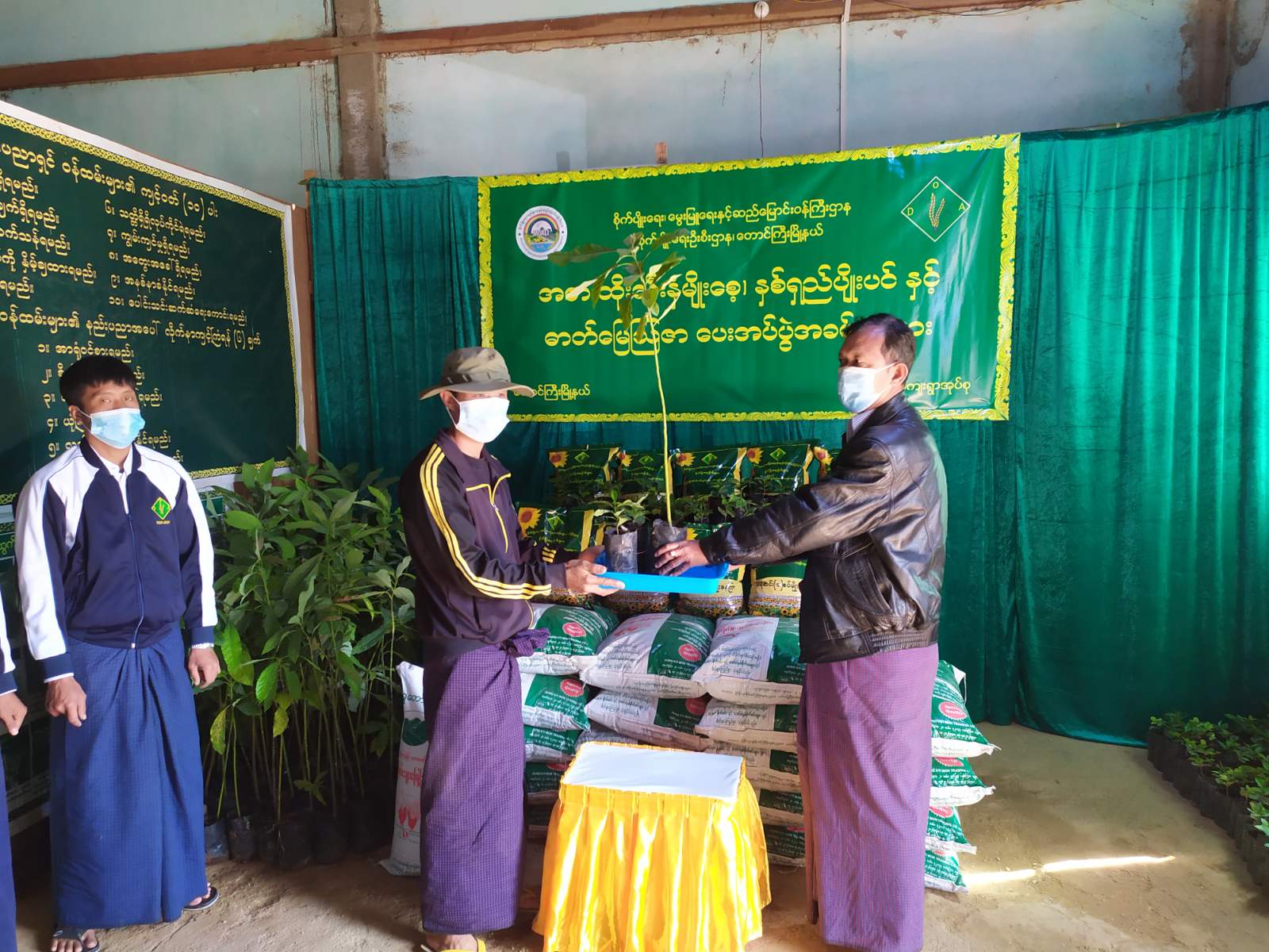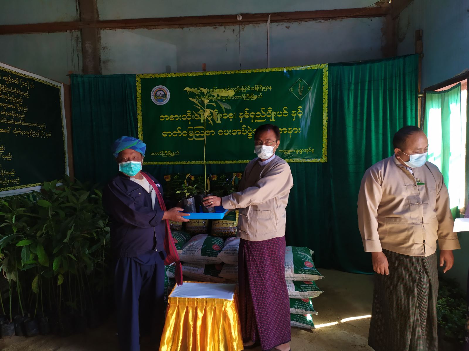 ရှမ်းပြည်နယ်(တောင်ပိုင်း)၊ တောင်ကြီးခရိုင်၊ ကျောက်တလုံးကြီးမြို့တွင်တောင်ကြီးမြို့၊ စိုက်ပျိုးရေး ဦးစီးဌာနမှ၊ အစားထိုးသီးနှံမျိုးစေ့၊ နှစ်ရှည်ပျိုးပင်နှင့် သဘာဝမြေဩဇာများအား တောင်သူများ တစ်ပိုင် တစ်နိုင် စိုက်ပျိုးနိုင်ရန်နှင့် မြေဆီလွှာပျက်စီးမှုကို ကာကွယ်ထိန်းသိမ်းရန် ရည်ရွယ်၍ ကျောက်တလုံးကြီး မြို့ စိုက်ပျိုးရေးဦးစီးဌာနခန်းမတွင်ယနေ့နံနက်၁၀နာရီခွဲခန့်က ပေးအပ်ခဲ့ကြောင်းသိရသည်။