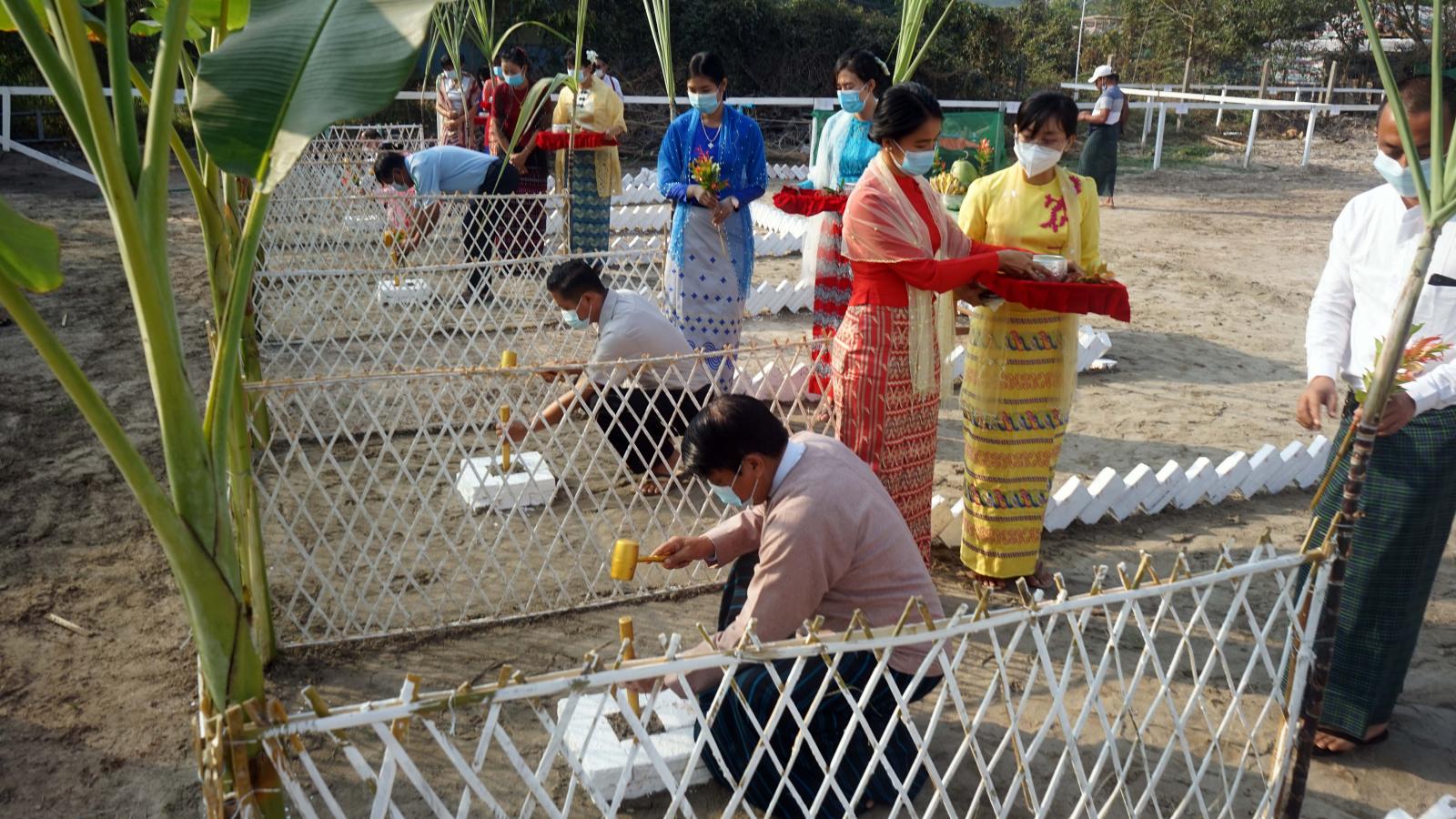 ကရင်ပြည်နယ်၊ ဘားအံပညာရေးဒီဂရီကောလိပ်တွင် ၂၀၂၀-၂၀၂၁ ဘဏ္ဍရေးနှစ် ငွေလုံးငွေရင်း အသုံးစရိတ်ဖြင့် တည်ဆောက်မည့် အဆောက်အဦ(၃)ခုတို့၏ ပန္နက်တင်မင်္ဂလာ အခမ်းအနားကို ယနေ့နံနက် ၈ နာရီခွဲခန့်က အဆိုပါအဆောက်အဦများ ဆောက်လုပ်မည့် မြေနေရာများ၌ ကျင်းပသည်။