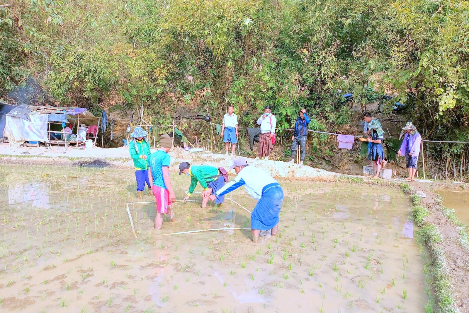 ရှေးဦးစွာ စိုက်ပျိုးရေးဦးစီးဌာန မြို့နယ်ဦးစီးမှူး ဦးကျော်ကျော်မိုးက စိုက်ပျိုးနည်းစနစ်များ မှန်ကန် စေရေးနှင့် စနစ်တကျဖြစ်စေရေး၊ နွေစပါးအထွက်တိုးရေးအတွက် တောင်သူများအား နားလည် သဘောပေါက်အောင် ရှင်းလင်းဆွေးနွေးပြီး နွေစပါး အထွက်တိုးစေရန် ကြိုးတန်းစနစ်ဖြင့် စံပြကွက် စိုက်ပျိုးနေမှုနှင့် ရေရရှိမှုအခြေအနေများအား ကြည့်ရှုခဲ့သည်။