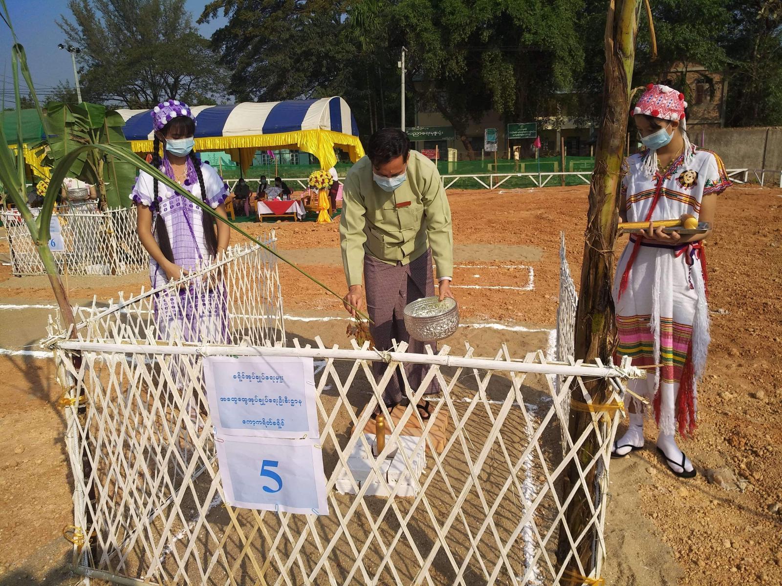 အဆိုပါပန္နက်တင်မင်္ဂလာအခမ်းအနားကို ကရင်ပြည်နယ်လွှတ်တော်ဒုတိယဥက္ကဋ္ဌ ဒေါ်နန်းသူဇာဝင်း၊ ကရင်ပြည်နယ်လူဝန်မှုကြီးကြပ်ရေးနှင့် လူ့စွမ်းအားအရင်းအမြစ်ဝန်ကြီး ဦးမင်းကိုခိုင်၊ ကရင်ပြည်နယ် ပအိုဝ့်တိုင်းရင်းသားရေးရာဝန်ကြီးဦးခွန်မျိုးတင့်၊ ပြည်နယ်အားကစားနှင့် ကာယပညာ ဦးစီးဌာန၊ ညွှန်ကြားရေးမှူး ဦးစိုးနိုင်၊ ခရိုင်အုပ်ချုပ်ရေးမှူး ဦးနေထွန်းအောင်၊ မြို့နယ် အုပ်ချုပ်ရေးမှူးဦးဆန်းနု၊ မြို့နယ်စည်ပင် သာယာရေးဥက္ကဋ္ဌ ဦးဉာဏ်စိန်နှင့် တာဝန်ရှိသူများက လုပ်ငန်းတည်ဆောက်မည့် သတ်မှတ်နေရာအား ပန္နက်တိုင်ရိုက်ခြင်းနှင့် အမွေးနံ့သာများ ပက်ဖြန်းခြင်းတို့ကိုဆောင်ရွက်ခဲ့ကြသည်။