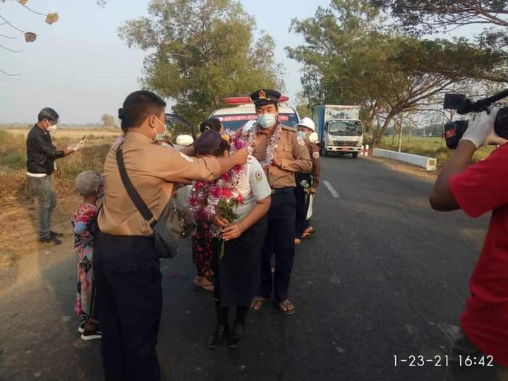 ရန်ကုန်တိုင်းဒေသကြီး၊ လသာမြို့နယ်၊ ရန်ကုန်ပြည်သူဆေးရုံကြီး(ICU)တွင် စေတနာ့ဝန်ထမ်း Volunteer အဖြစ်(၁)လကြာ သွားရောက်တာဝန်ထမ်းဆောင်ခဲ့သည့် သဲကုန်းမြို့နယ်၊ကြက်ခြေနီတပ်ဖွဲ့မှ တပ်ဖွဲ့ဝင်များသည် ယမန်နေ့ညနေပိုင်းတွင် သဲကုန်းမြို့နယ်သို့ ပြန်လည်ရောက်ရှိလာခဲ့ရာ သဲကုန်းမြို့နယ်အစမှ တာဝန်ရှိသူများက ဂုဏ်ပြုကြိုဆိုခဲ့ကြကြောင်း သိရသည်။