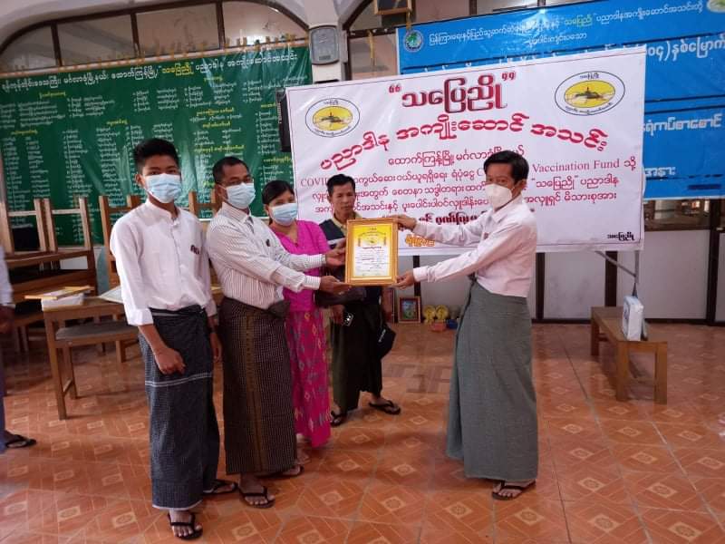 ရန်ကုန်မြောက်ပိုင်းခရိုင် မင်္ဂလာဒုံမြို့နယ် ထောက်ကြန့်နေ အလှူရှင်များစုပေါင်းပြီး ကိုဗစ်-၁၉ ရောဂါ ကာကွယ်ဆေး ၀ယ်ယူနိုင်ရေးအတွက် ငွေကျပ်(၂၈)သိန်းလှူဒါန်းပွဲကို ထောက်ကြန့်သပြေညို ပညာဒါန အကျိုးဆောင် အသင်းခန်းမ၌ ကိုဗစ်-၁၉ရောဂါကာကွယ်ရေးအတွက် ကျန်းမာရေးနှင့်အားကစား၀န်ကြီးဌာနက ထုတ်ပြန်ထားသည့် စည်းကမ်းလမ်းညွှန်ချက်များနှင့် အညီ ယနေ့နံနက်၉နာရီက ကျင်းပသည်။