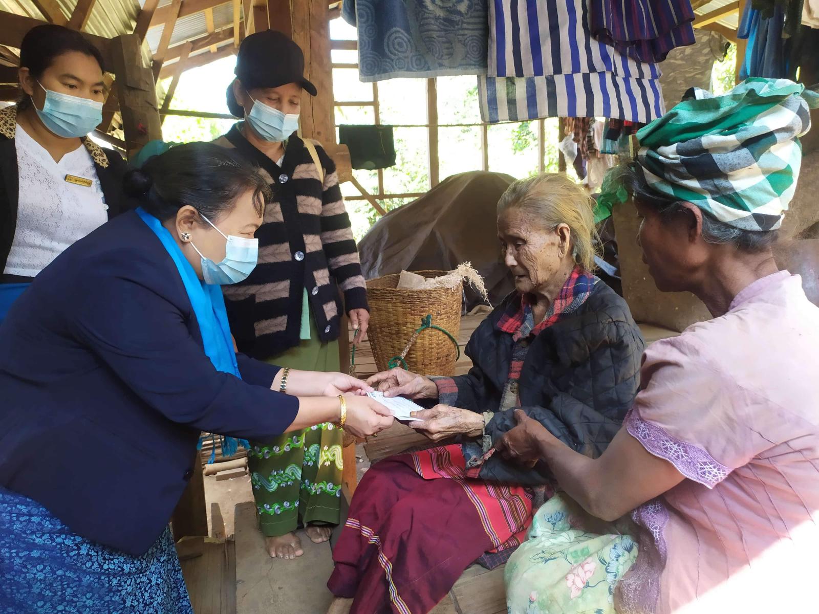 ထို့သို့ သွားရောက်ပေးအပ်ရာတွင် ကယားပြည်နယ်လူမှုဝန်ထမ်းဦးစီးဌာန ညွှန်ကြားရေးမှူး ဒေါ်သိန်းသိန်းမြင့်၊ မြို့နယ်ဦးစီးမှူး ဒေါ်နှင်းထက်ထက်လွင်နှင့်ဝန်ထမ်းများ၊ မြို့နယ်အထွေထွေအုပ်ချုပ်ရေးဦးစီးဌာန တာဝန်ရှိသူများ နှင့် သက်ဆိုင်ရာ ရပ်ကွက်၊ ကျေးရွာအုပ်စု စာရေးဝန်ထမ်းများက လူမှုရေးပင်စင်ခံစားရရှိသော သက်ကြီး ဘိုးဘွားများထံ အိမ်တိုင်ရာရောက် ထောက်ပံ့ငွေများ သွားရောက်ပေးအပ်ခဲ့သည်။