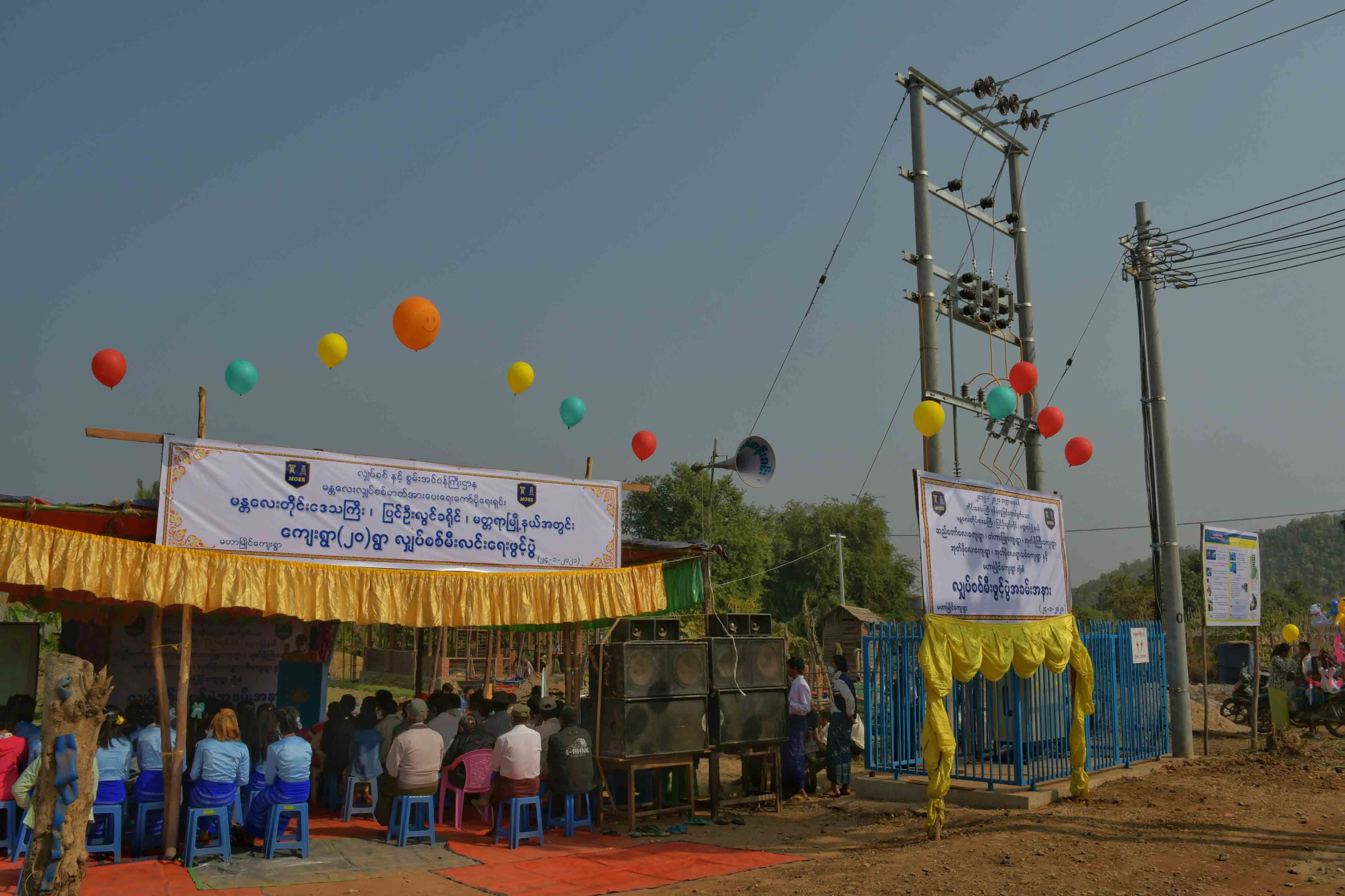 ရှေးဦးစွာ အခမ်းအနားကို ကျေးရွာထရန်စဖော်မာရှေ့တွင်ကျင်းပရာ အခမ်းအနားကို တိုင်းဒေသ ကြီး လွှတ်တော်ကိုယ်စားလှယ် ဦးမောင်မောင်အေး၊ မတ္တရာမြို့နယ် အထွေထွေအုပ်ချုပ် ရေး ဦးစီးဌာန မြို့နယ်အုပ်ချုပ်ရေးမှူး ဦးအောင်ကျော်နိုင်၊ ပြင်ဦးလွင်ခရိုင် လျှပ်စစ်မန်နေဂျာ ဦးမြသောင်း၊ မတ္တရာမြို့နယ် လျှပ်စစ် မန်နေဂျာ ဦးဝေဖြိုးအောင်နှင့် ကျေးရွာတာဝန်ရှိများမှ ဖဲကြိုးဖြတ် ၍ဖွင့်လှစ်ပေးခဲ့ပြီး တိုင်းဒေသကြီးလွှတ်တော် ကိုယ်စားလှယ်မှ လျှပ်စစ်မီးအား မီးခလုတ်နှိပ်၍ ဖွင့်လှစ်ပေးခဲ့သည်။ထို့နောက် အခမ်းအနားကို ဆက်လက် ကျင်းပခဲ့ရာ တိုင်းဒေသကြီးလွှတ်တော် ကိုယ်စားလှယ် ဦးမောင်မောင်အေးမှ လျှပ်စစ်ဓာတ်အားလုပ်ငန်း ဆောင်ရွက်နေမှုများ၊ မီးရရှိမှု အခြေအနေများနှင့်ပတ်သက်၍ ရှင်းလင်းပြောကြားခဲ့သည်။ ထို့နောက် ပြင်ဦးလွင်ခရိုင် လျှပ်စစ်မန်နေဂျာ ဦးမြသောင်းမှ လျှပ်စစ်အန္တရာယ်ကင်းရှင်းရေးနှင့် ပတ်သက်၍ သိကောင်းစရာများအား ရှင်းလင်းပြောကြားခဲ့ကာ မြို့နယ်လျှပ်စစ်မန်နေဂျာ ဦးဝေဖြိုးအောင်မှ လျှပ်စစ်အန္တရာယ်ကင်းရှင်းရေး အသိပညာ ပေးလက်ကမ်း စာစောင်များအား ကျေးရွာမီးလင်းရေးကော်မတီသို့ပေးအပ်ခဲ့သည်။ ကျေးရွာမီးလင်းရေးကော်မတီ ဋ္ဌက္ကဌမှ ကျေးရွာအုပ်စု အုပ်ချုပ်ရေးမှူးမှ ကျေးဇူးတင်စကားပြောကြားခဲ့သည်။