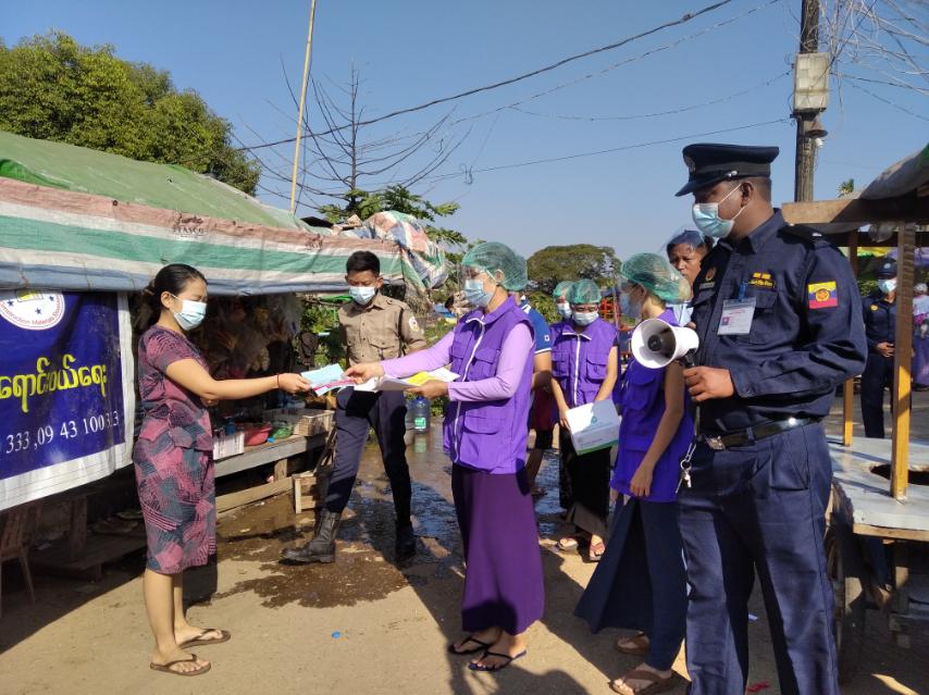 ရန်ကုန်တိုင်းဒေသကြီး၊ မြောက်ပိုင်းခရိုင်၊ အင်းစိန်မြို့နယ်၌ ကိုဗစ်-၁၉ ရောဂါ ကူးစက်ပျံ့နှံ့မှုမရှိစေ ရန်နှင့် ကြိုတင် ကာကွယ်နိုင်စေရန် ရည်ရွယ်၍ မြို့နယ်အတွင်းရှိ ရပ်ကွက်များ၌ လူစည်ကားရာ နေရာများသို့ သွားရောက်ကာ မိခင်နှင့် ကလေး စောင့်ရှောက်ရေးအသင်း၊ ကြက်ခြေနီအသင်းခွဲနှင့် စေတနာ့ဝန်ထမ်းများ ပူးပေါင်း၍ နှာခေါင်းစည်းများ အခမဲ့ ဖြန့်ဝေပြီး အသိပညာပေးခြင်းကို ယမန်နေ့ နံနက်(၉)နာရီအချိန် က ဆောင်ရွက်ခဲ့ကြောင်း သိရသည်။