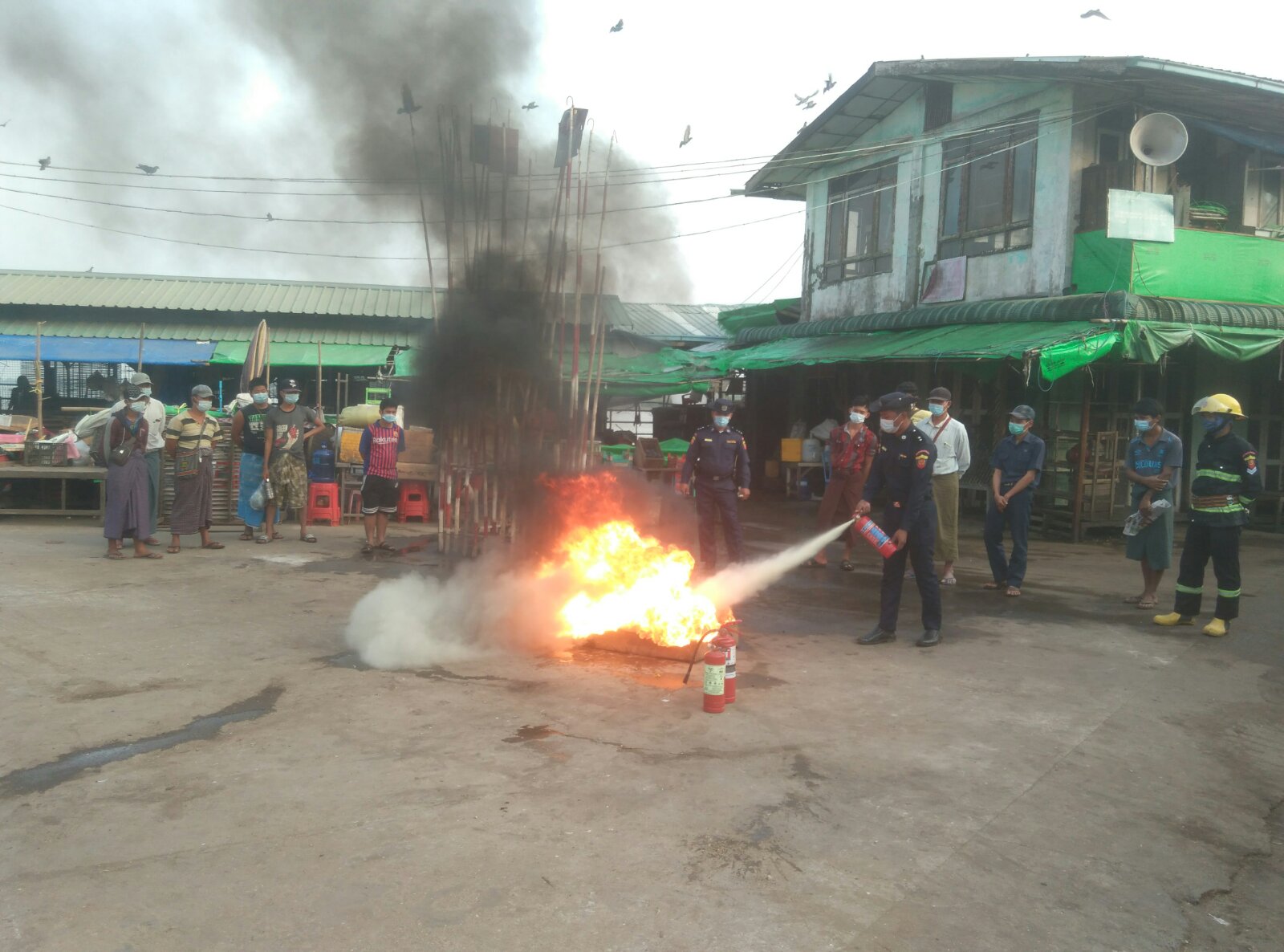 ထို့နောက် ကျောက်တန်းမြို့နယ် စည်ပင်သာယာရေးကော်မတီ အမှုဆောင်အရာရှိ ဒေါ်တင်မိုးဆွေနှင့် ဈေးကော်မတီ ဒေါ်သန်းသန်းကြူတို့က မီးသတ်ဆေးဘူးဖြင့် မီးငြှိမ်းနည်းကို လက်တွေ့သရုပ်ပြခြင်းများ ဆောင်ရွက်ခဲ့ကြကြောင်း သိရသည်။