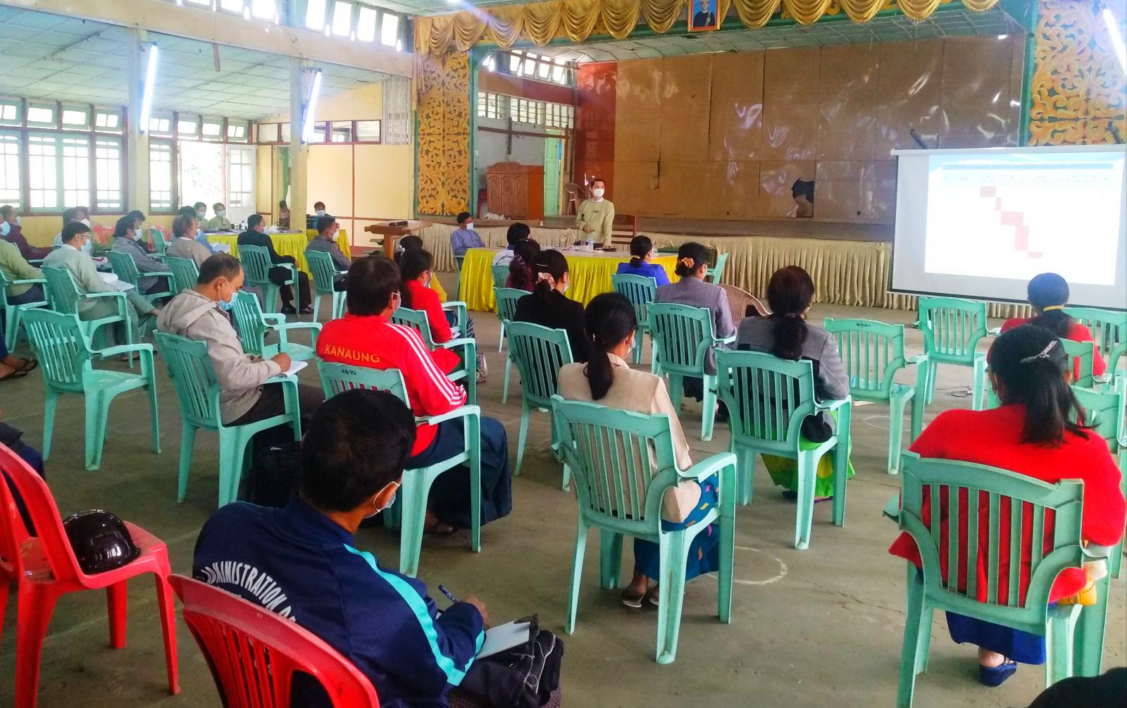 ဆွေးနွေးပွဲတွင်မြို့နယ်အုပ်ချုပ်ရေးမှူးဦးရဲရင့်လှိုင်ကအဖွင့်အမှာစကားပြောကြားခဲ့ပြီး မြို့နယ်စည်ပင်သာယာ ရေးကော်မတီဥက္ကဌဦးစိုးရွှေက အမှာစကားပြောကြားခဲ့သည်။ ထို့နောက် မြို့နယ်အုပ်ချုပ်ရေးမှူး မှရပ်ကွက်/ ကျေးရွာအုပ်ချုပ်ရေး ဆိုင်ရာဥပဒေ၊ နည်းဥပဒေနှင့် ပြင်ဆင် သည့် ဥပဒေ၊ နည်းဥပဒေများအား Power Pointဖြင့်ရှင်း လင်းဆွေးနွေးခဲ့သည်။