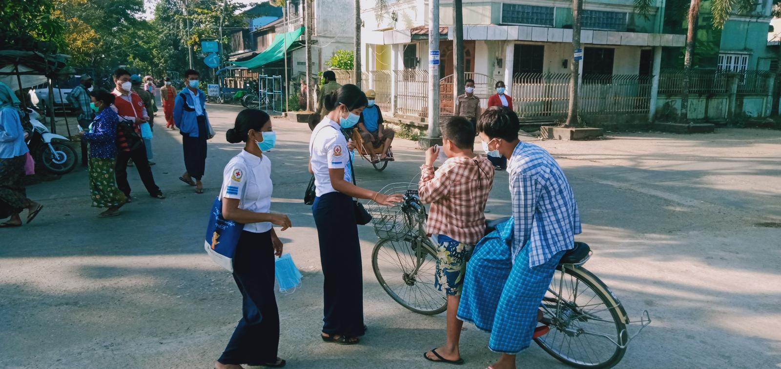 အဆိုပါ လုပ်ငန်းများ ဆောင်ရွက်ရာတွင် မြို့နယ်ကိုဗစ်-၁၉ ထိန်းချုပ်ရေးနှင့် အရေးပေါ်တုံ့ပြန်ရေး ကော်မတီ၊ ပြန်ကြားရေးနှင့် လှုံ့ဆော်ရေးဆပ်ကော်မတီမှ တာဝန်ရှိသူများနှင့် မြို့နယ်ကြက်ခြေနီတပ်ဖွဲ့တို့ ပူးပေါင်း၍ နှာခေါင်းစည်း (Mask)များ တပ်ဆင်မှု ရှိ/မရှိ စစ်ဆေး၍ မတပ်ဆင်ထားသော သူများအား အခမဲ့ပေးဝေ တပ်ဆင်စေခြင်းနှင့် အသိပညာပေး လက်ကမ်းစာစောင်များ ဖြန့်ဝေခြင်းတို့ကို အရှိန်အဟုန်တိုးမြှင့် ဆောင်ရွက် လျက်ရှိသည်။