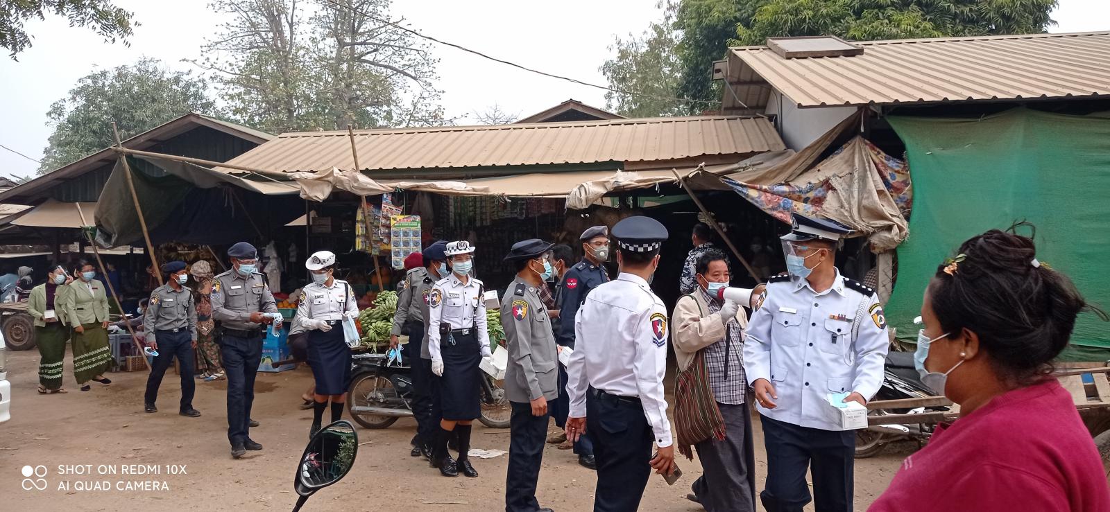 မန္တလေးတိုင်းဒေသကြီး၊ ညောင်ဦးခရိုင်၊ ညောင်ဦးမြို့နယ် ပြည်သူ့ရဲတပ်ဖွဲ့ဝင်များသည် မဏိစည်သူ ဈေးနှင့်ညောင်ဦးမြို့တွင်းလမ်းတစ်လျှောက်၌ ကိုဗစ်-၁၉ ရောဂါ ကူးစက်ပြန့်ပွားမှုကာကွယ်ထိန်းချုပ်ရေး Mask Campaign ကိုယနေ့ နံနက် ၈ နာရီက ပြုလုပ်သည်။