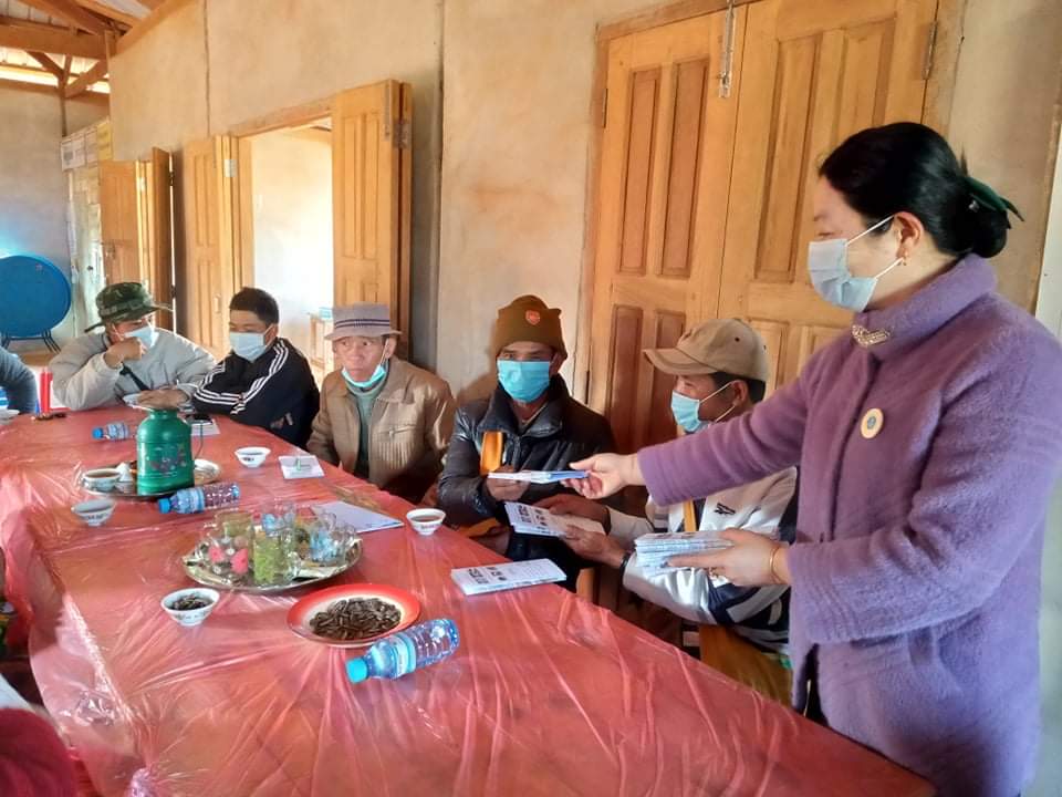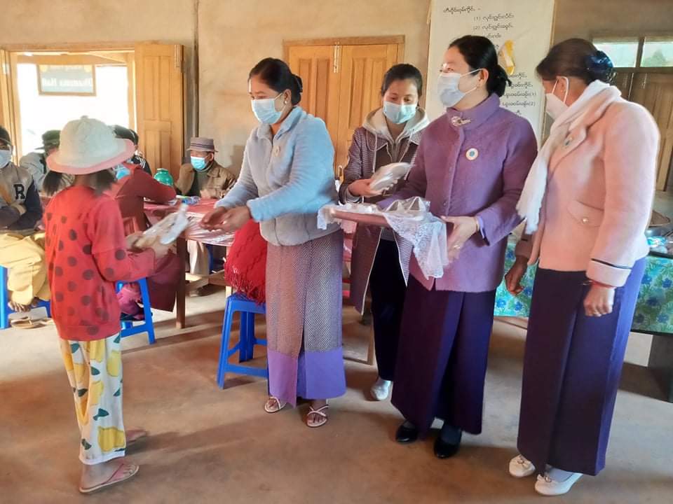 ထို့နောက် အခမ်းအနားသို့ တက်ရောက်လာသော ကျေးရွာအုပ်စု အုပ်ချုပ်ရေးမှူး၊ ကျေးရွာနေ ပြည်သူများအား မြို့နယ်အမျိုးသမီးရေးရာအဖွဲ့၊ မြို့နယ်မိခင်နှင့်ကလေးစောင့်ရှောက်ရေး အသင်းတို့က ကျေးလက်ဒေသ စုပေါင်းအမှိုက်သိမ်းဆည်းစနစ် တည်ထောင်ခြင်းလုပ်ငန်း အသိပညာပေး လက်ကမ်းစာစောင်များဖြန့်ဝေပေးခဲ့ပြီး ပြည်နယ် မိခင်နှင့်ကလေး စောင့်ရှောက် မှုကြီးကြပ်ရေးအဖွဲ့မှ ထောက်ပံ့ပေးအပ် လာသော ကလေးဖိနပ် ( ၂၂ )ရံကို ကလေးငယ်( ၂၂ )ဦးတို့အား အခမဲ့ဖြန့်ဝေပေးခဲ့ကြောင်း သိရသည်။